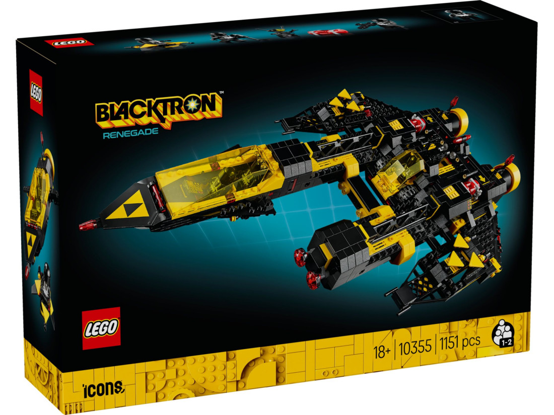 - Розміри моделі – Набір складається з 1 151 деталі, а зібраний космічний корабель Blacktron Renegade має висоту понад 15 см, довжину 17 см та ширину 6 см.