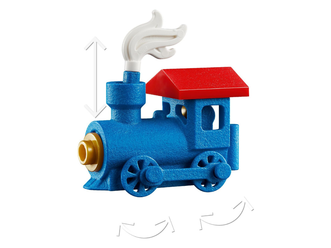 Під час руху поїзда хитається димова труба локомотива, а на платформі передбачено дзвіночок — механічні елементи спрацьовують при легкому поштовху складу. Поїзд можна оснастити компонентами LEGO Powered Up (постачаються окремо) для моторизації. У коробці — два комплекти друкованих інструкцій, придатні для паралельного складання. Цифровий посібник у застосунку LEGO Builder допомагає масштабувати й повертати модель у 3D, відстежувати етапи та використовувати режим «Будуємо разом». Габарити зібраної моделі: висота 13 см, довжина 49 см, ширина 7 см.