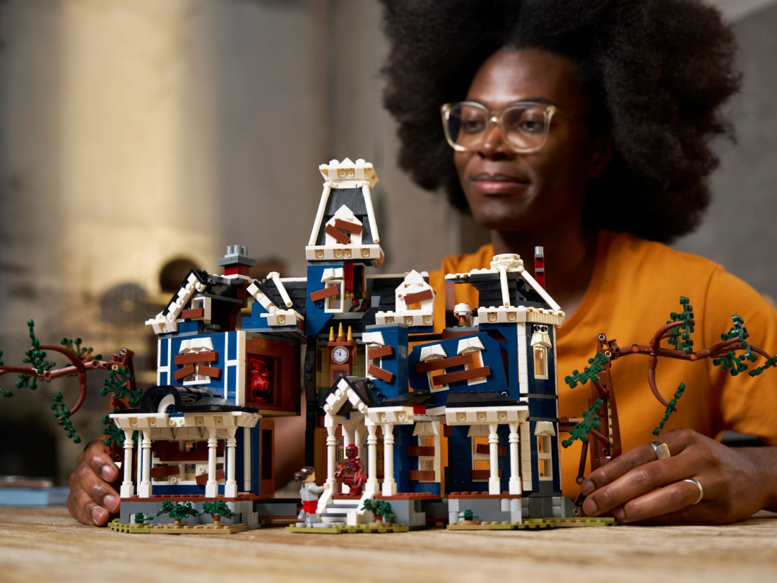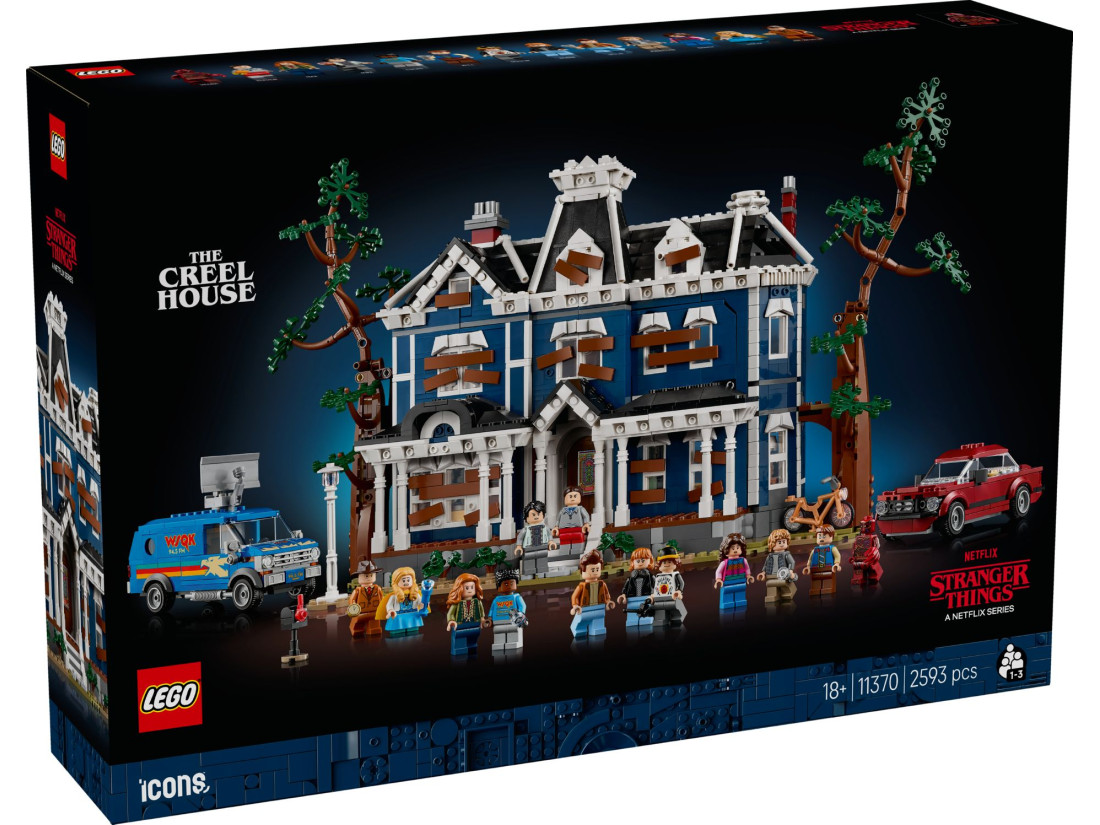 LEGO ICONS Stranger Things: Дім Крилів (11370) — набір для дорослих 18+, створений за мотивами «Дивних див». Відтворено готичний особняк із вінтажним фасадом і відкривною задньою частиною; усередині — доступ до семи приміщень: коридору, їдальні, вітальні, спалень Аліси та Генрі, сходового майданчика й горища.