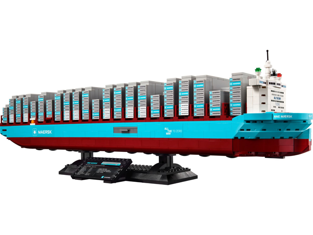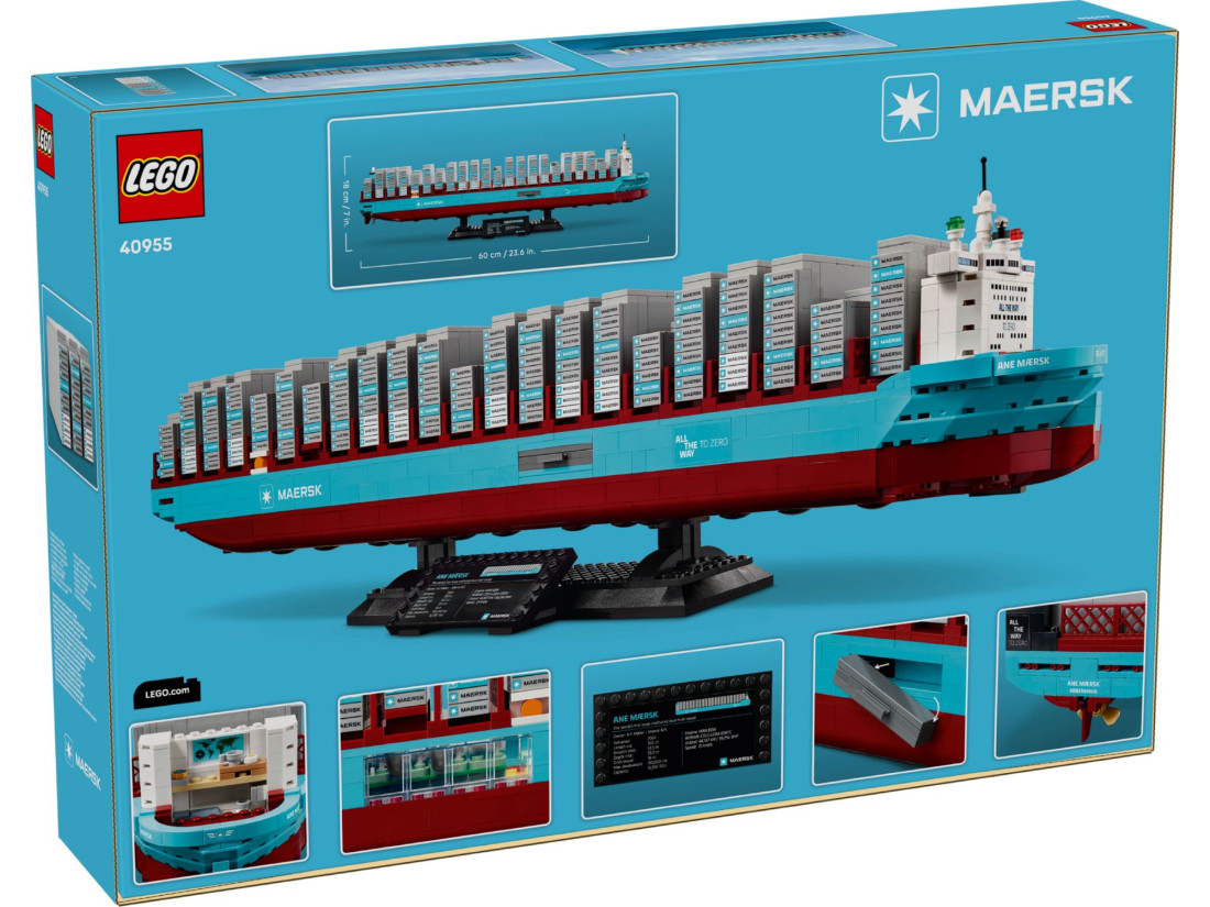 Набір серії LEGO Icons «Контейнеровоз Maersk Dual‑Fuel» (40955) присвячений сучасному вантажному судну ANE MÆRSK. Конструкція відтворює характерні лінії корпусу, надбудову та палубне планування, передаючи образ одного з перших контейнеровозів із двопаливною енергетичною установкою. Модель орієнтована на акуратну демонстрацію та технічну збірку, поєднуючи декоративні елементи з інженерними вузлами.