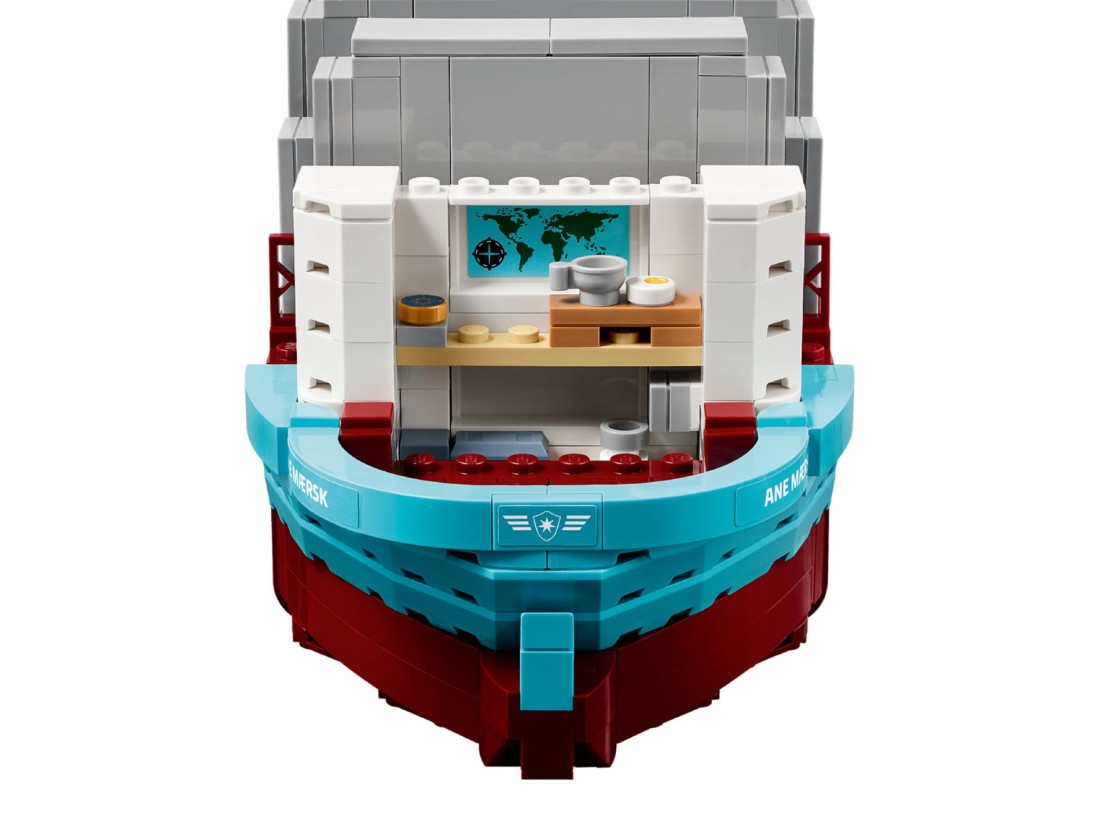 Збірка включає сегмент містка, який відкривається і показує каюти екіпажу, прозорі вікна машинного відділення для огляду внутрішніх деталей і висувні трапи уздовж бортів. У комплект входять збірні контейнери та інформаційна табличка для демонстраційної підставки. Підсумкова композиція містить 1 513 елементів і на підставці сягає приблизно 18 см у висоту, 60 см у довжину та 12 см у ширину; підійде для колекцій на морську тематику й для оформлення робочого простору.