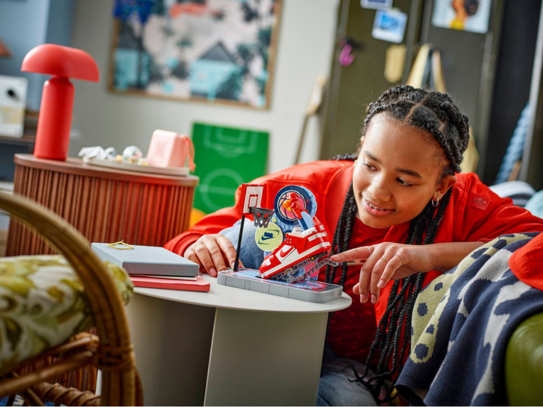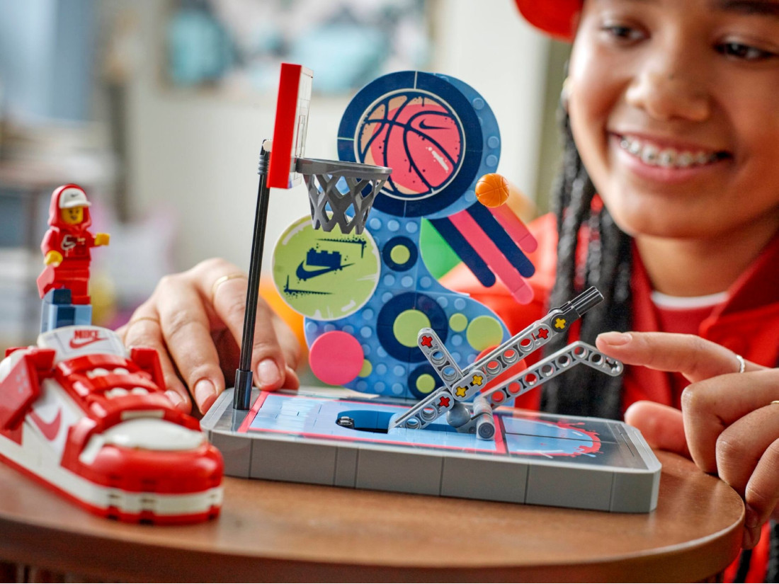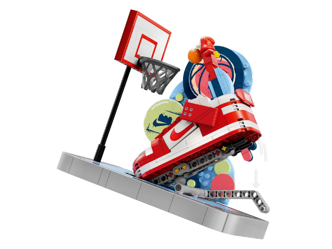 Набір LEGO Nike Dunk Trickshot (43021) переносить гру на вуличний майданчик: невелика арка з графіті та кільцем об’єднана з реалістичним кросівком Nike Dunk, у якому сховано простий механічний важіль. Натисніть на нього, щоб відтворити трюковий кидок у кошик, а за бажання — зніміть механізм і використовуйте окремо як міні-атракціон. Концепція поєднує динаміку баскетболу й естетику вуличної культури, пропонуючи дітям від 10 років захопливе складання та варіативний сценарій гри.