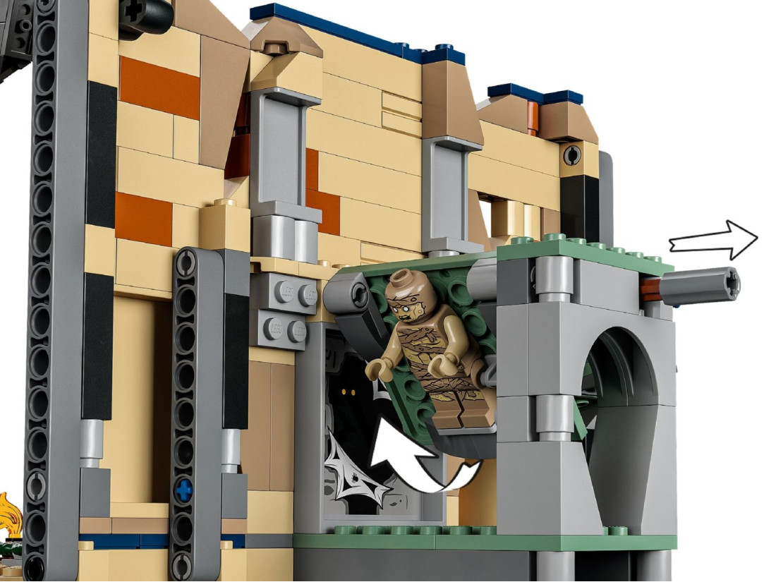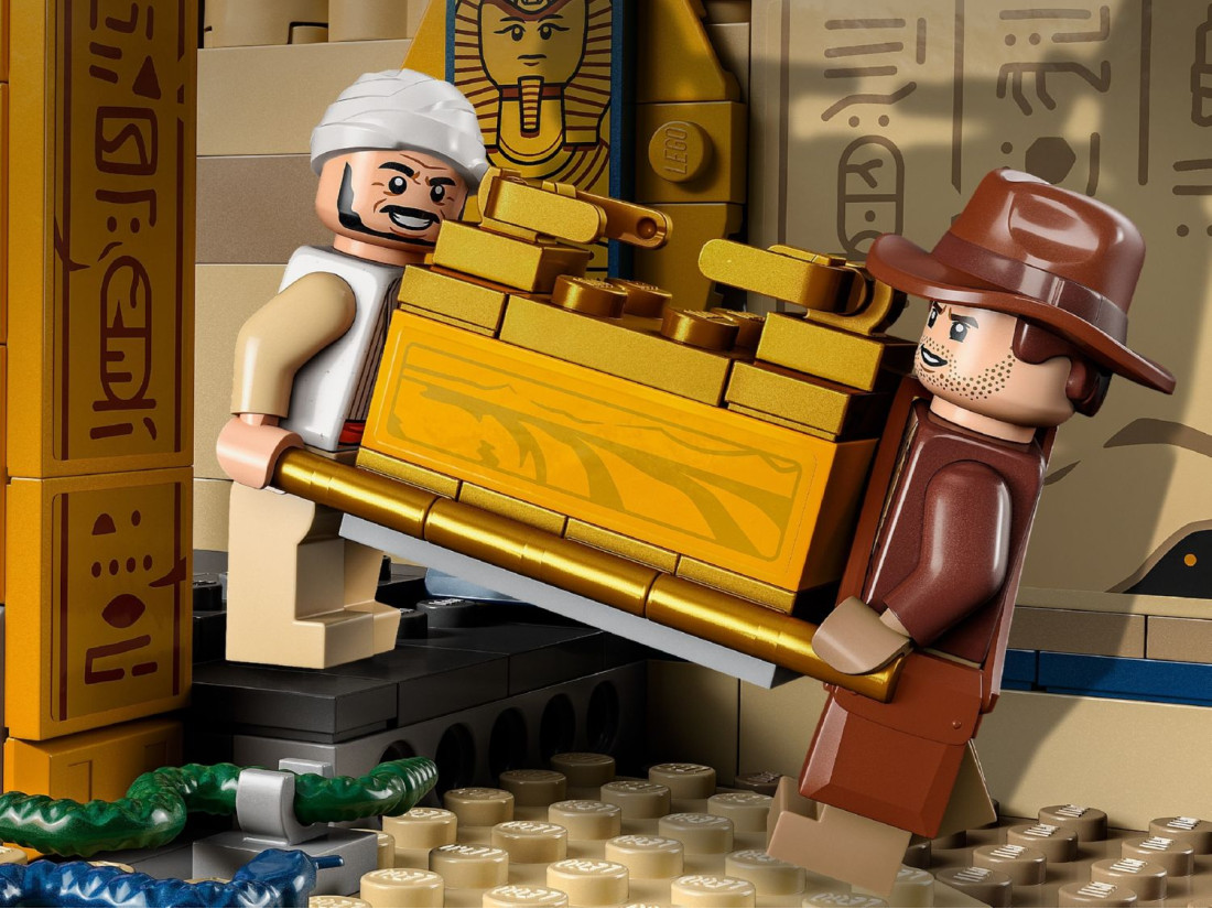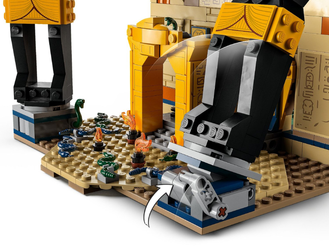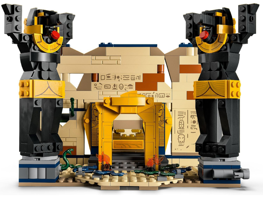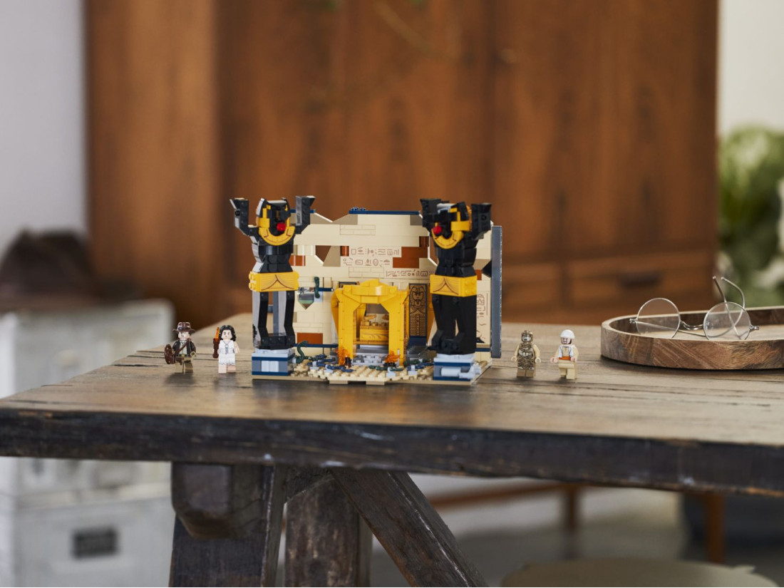 Конструктор LEGO Indiana Jones «Втеча із загубленої гробниці» (77013) відтворює момент із «У пошуках втраченого ковчега»: зал із давніми статуями, прихованими нішами та полчищами змій. Перекидна статуя Анубіса проламує стіну й відкриває таємний прохід, звідки з’являється мумія, додаючи динаміки грі. 600 деталей забезпечують цікаве складання та багаторазове розігрування сцен.