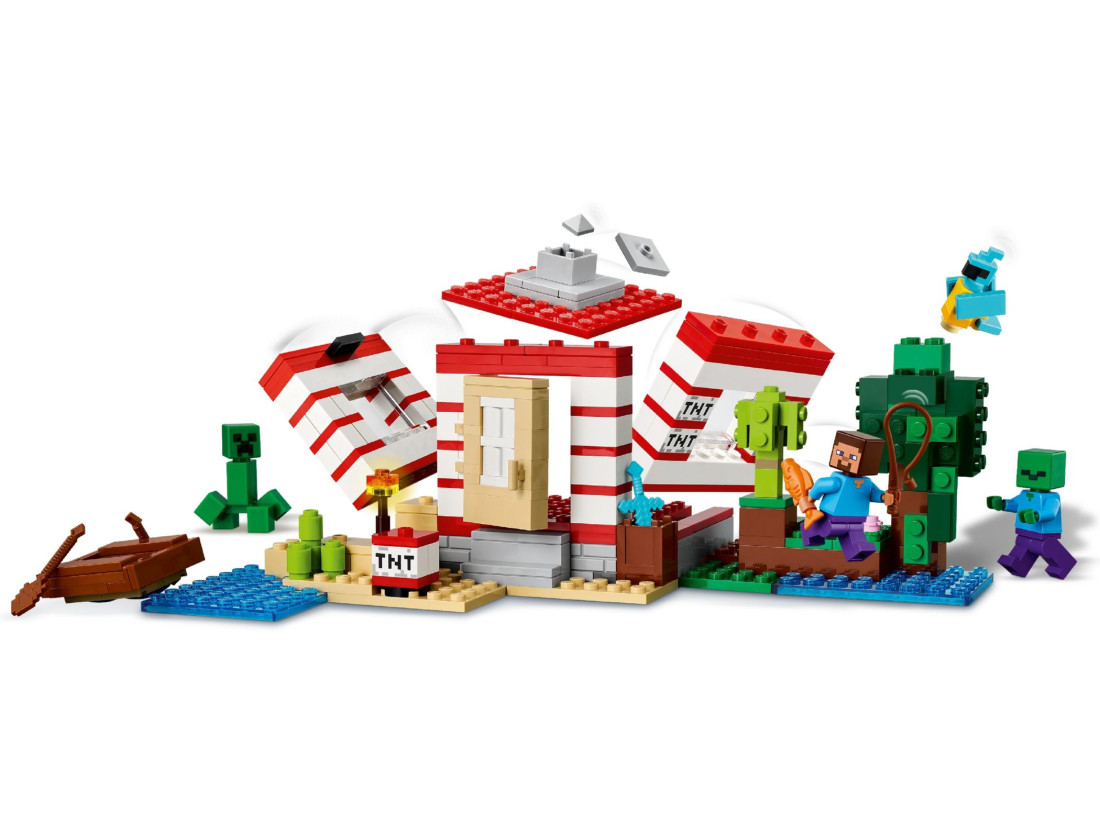 Вибухові пригоди Minecraft чекають дітей від 8 років з іграшковим будинком TNT Jungle House, натхненним джунглями та знаменитими динамітними блоками гри.