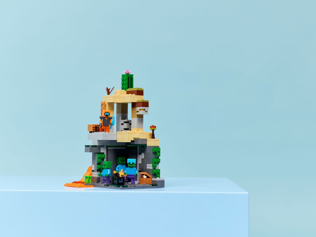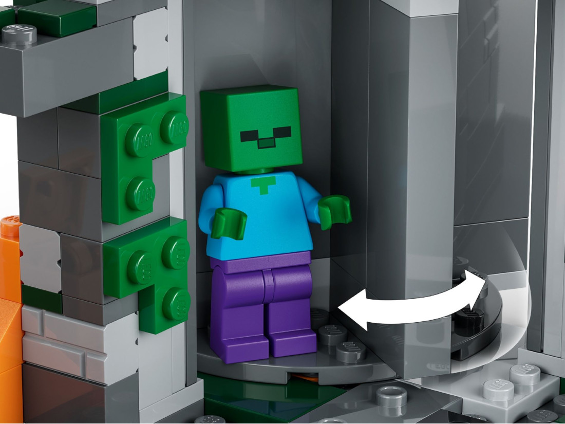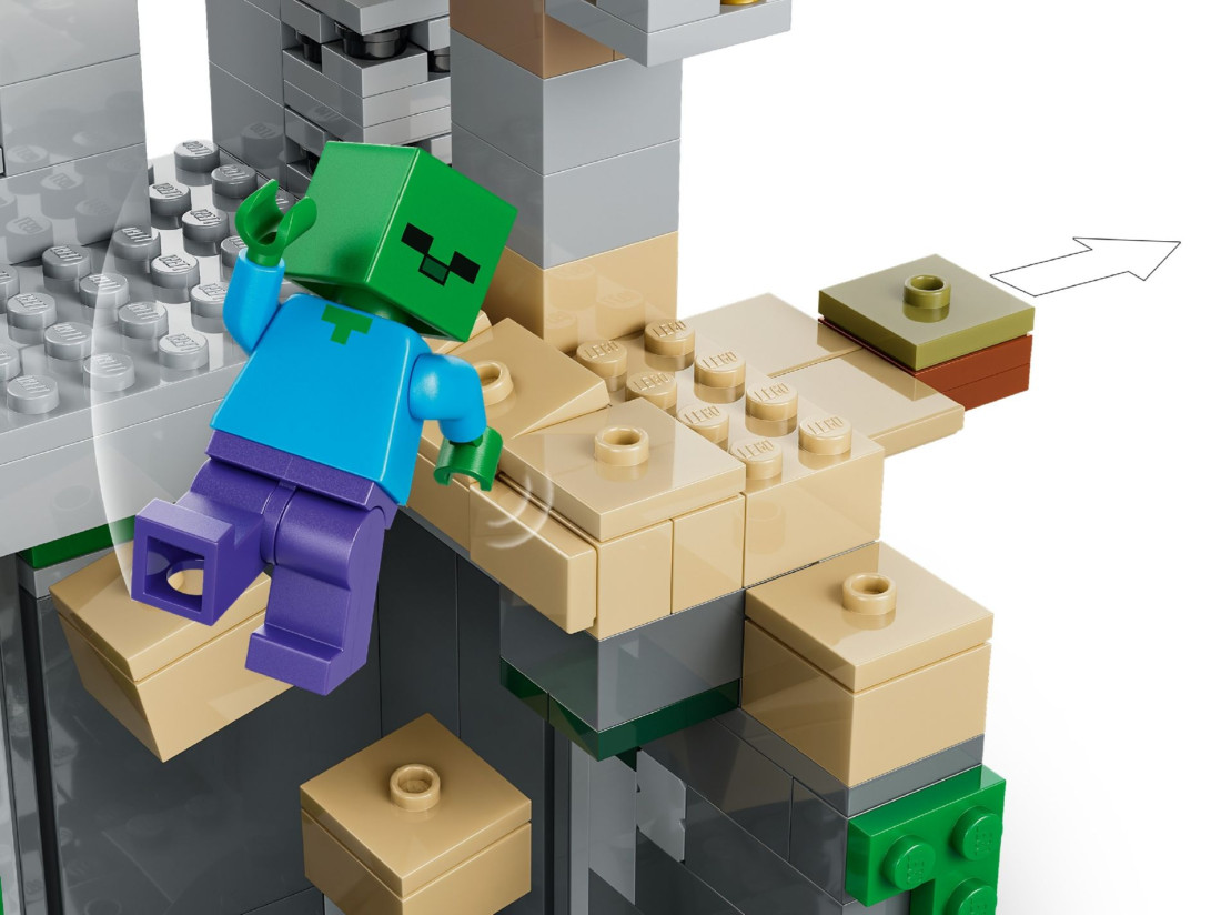 Набір LEGO Minecraft «Підземелля зомбі» (21587) переносить у пустельний біом, де під пісками приховано данж із коридорами, пастками й тайниками. У центрі споруди розташована обертова камера-спавнер, що викликає нові хвилі ворогів, а поряд — обвал каміння, який спрацьовує від зсувного елемента. Завдання гравця — грамотно використовувати оточення, броню та інструменти, щоб стримати натиск і дістатися до скрині зі здобиччю.