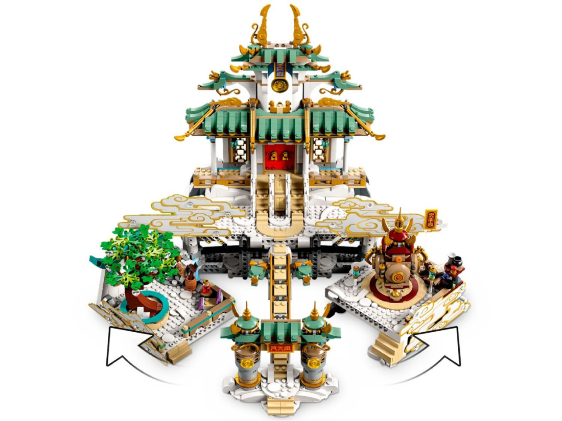 Дайте волю своїй уяві та творчості, досліджуючи міфічне царство Небесних Царств. Завершений храм має вражаючу висоту 37 см, що робить його чудовим центральним елементом експозиції. Пориньте в багаті знання стародавніх легенд і дозвольте історіям розгортатися, поки ви будуєте, граєте та створюєте свої власні небесні пригоди.