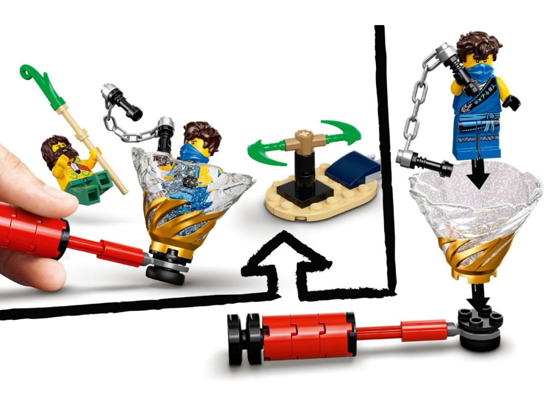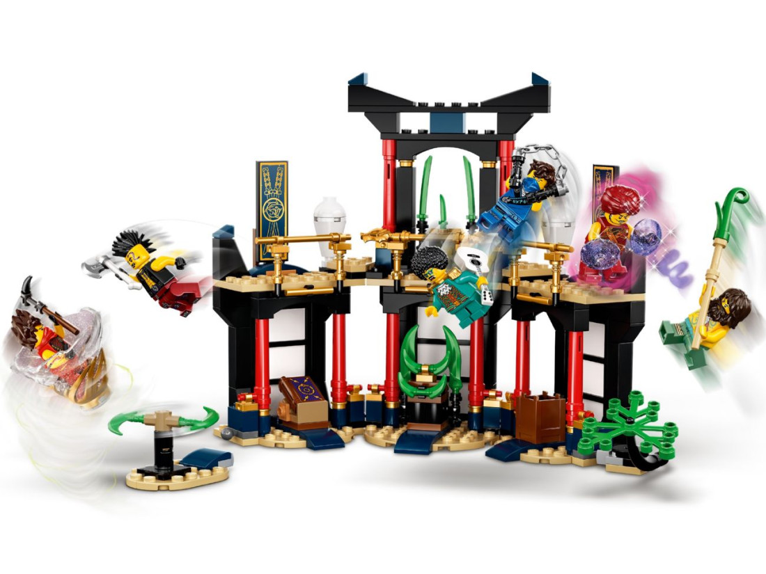 Храм виконано у вигляді дворівневого майданчика з інтерактивними елементами: є обертова збройова платформа, бойове озброєння та нефритові клинки. Ігровий простір дозволяє влаштовувати баталії на другому рівні й на землі. Приблизні габарити споруди — 17×16×24 см: конструкція зручна для гри й не займає багато місця. Покрокова інструкція із зрозумілими ілюстраціями допомагає швидко розпочати збірку, а колекційну цінність набору підкреслює золота фігурка Ллойда Спадщина на підставці.