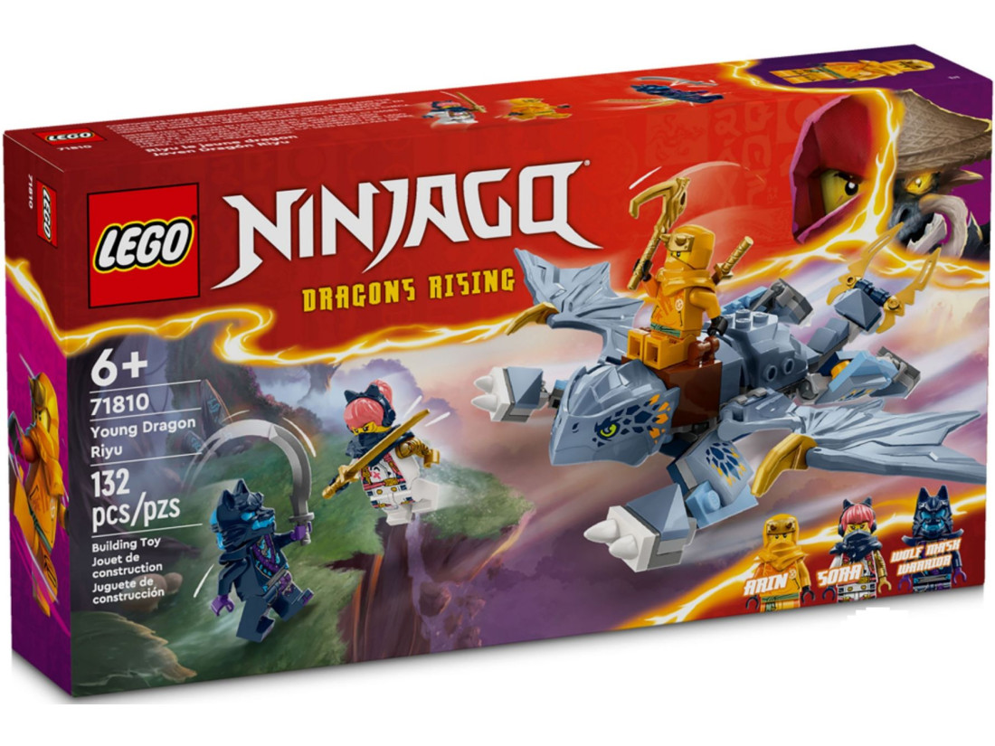 Дайте волю своїй уяві з ігровим набором «Молодий дракон Рію» (71810) з телешоу LEGO NINJAGO Dragons Rising, призначеним для дітей від 6 років і старше. Цей захоплюючий пригодницький набір дозволяє юним ніндзя відтворити захоплюючі повітряні битви та пригоди.