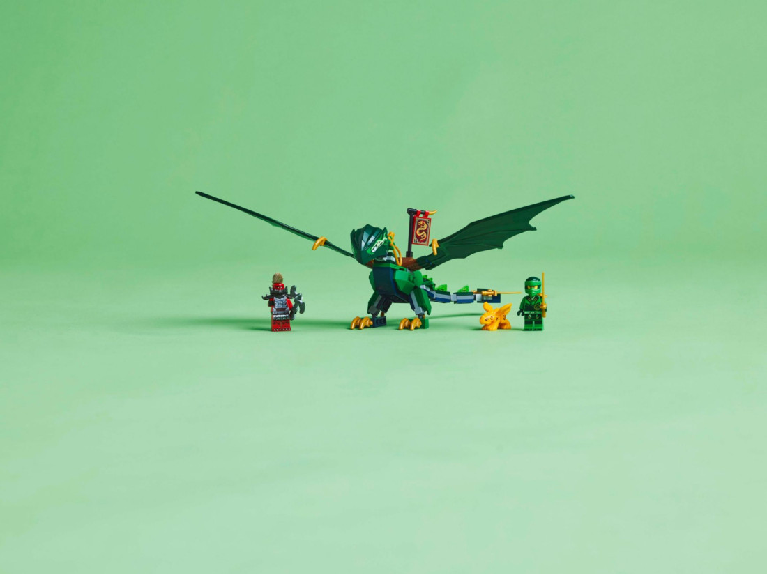 - Рухливий дракон NINJAGO® – Зберіть модель Lloyd's Green Forest Dragon™ з рухомим хвостом, шиєю, ногами, руками та великими крилами. Додатково дракон оснащений сідлом, на якому може сидіти фігурка персонажа.