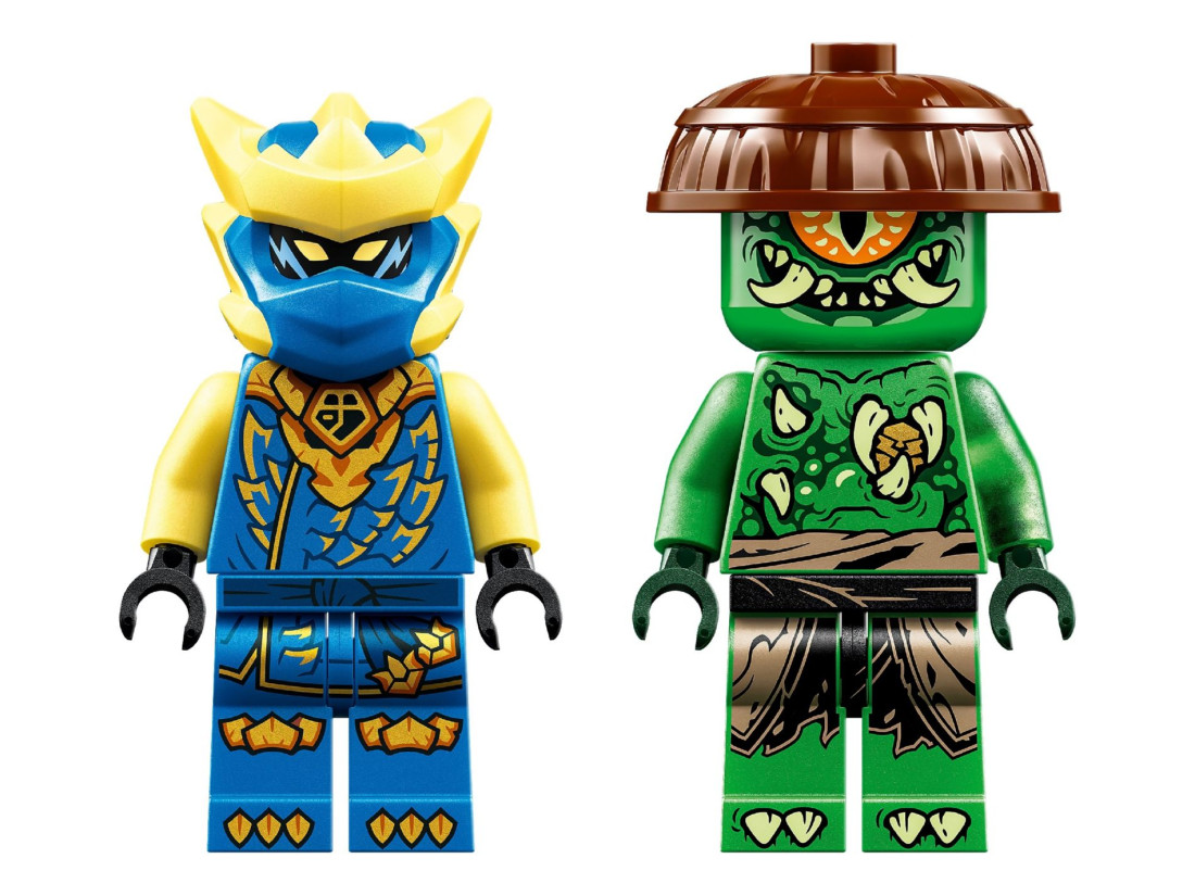 У коробці 107 елементів, 2 мініфігурки — Джей і Монстр Мутації, а також 4 види озброєння: два мечі, спис і кігті. Висота драконячого меха — понад 10 см, що зручно для гри та розміщення на полиці.