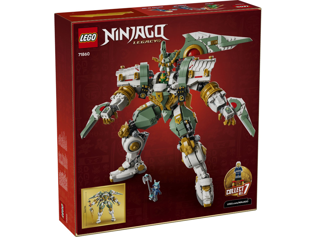 У коробці три персонажі: Ллойд, Грімфакс і колекційна фігурка Майстра Льоду на підставці з ювілейною монетою. Мех складається з 1 293 елементів і сягає понад 32 см у висоту, тому підходить як для динамічних ігрових сцен, так і для розміщення на полиці в колекції.