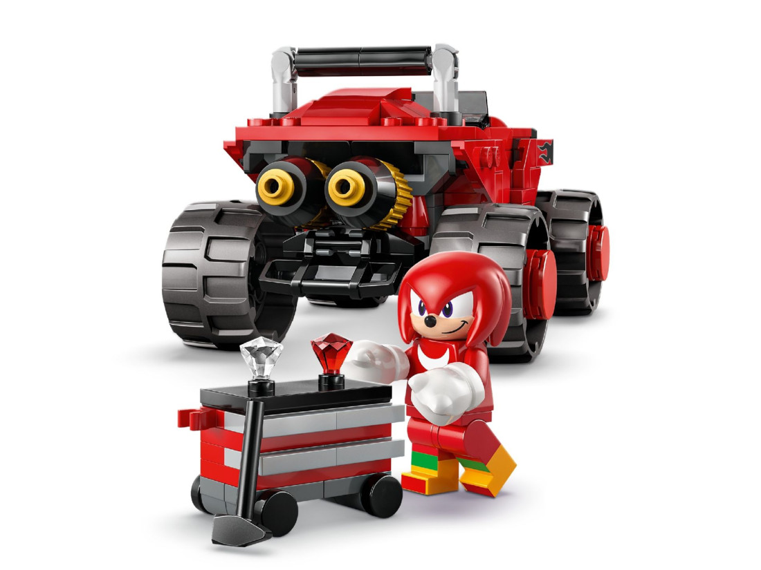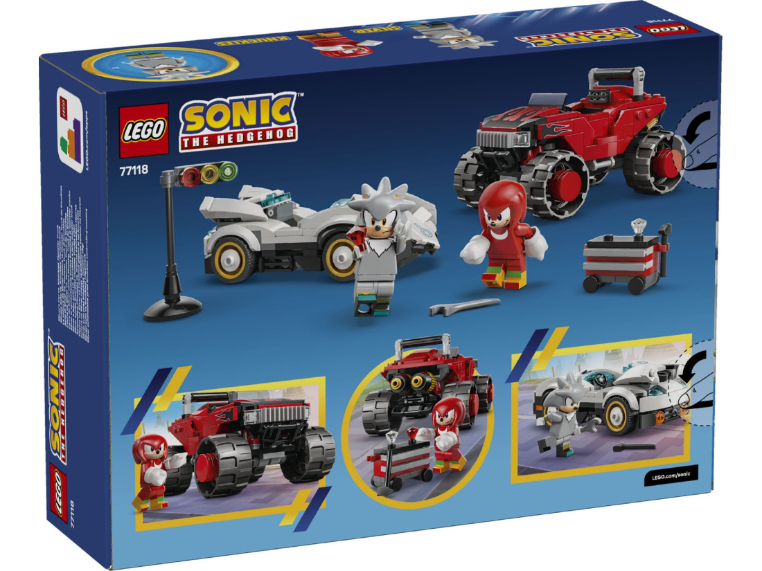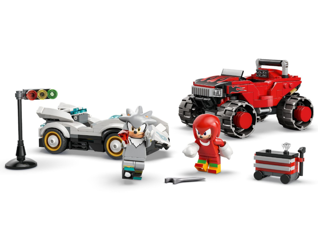 Особлива деталь — перша мініфігурка Сільвера; також у комплекті — Наклз. Два Смарагди Хаосу (червоний і білий) допомагають змінювати сценарії — від чистої швидкості до позашляхових маневрів. Набір сумісний з іншими моделями серії LEGO SONIC THE HEDGEHOG. Усього 378 деталей; розміри монстр‑трака — 7 см заввишки, 13 см завдовжки і 9 см завширшки.