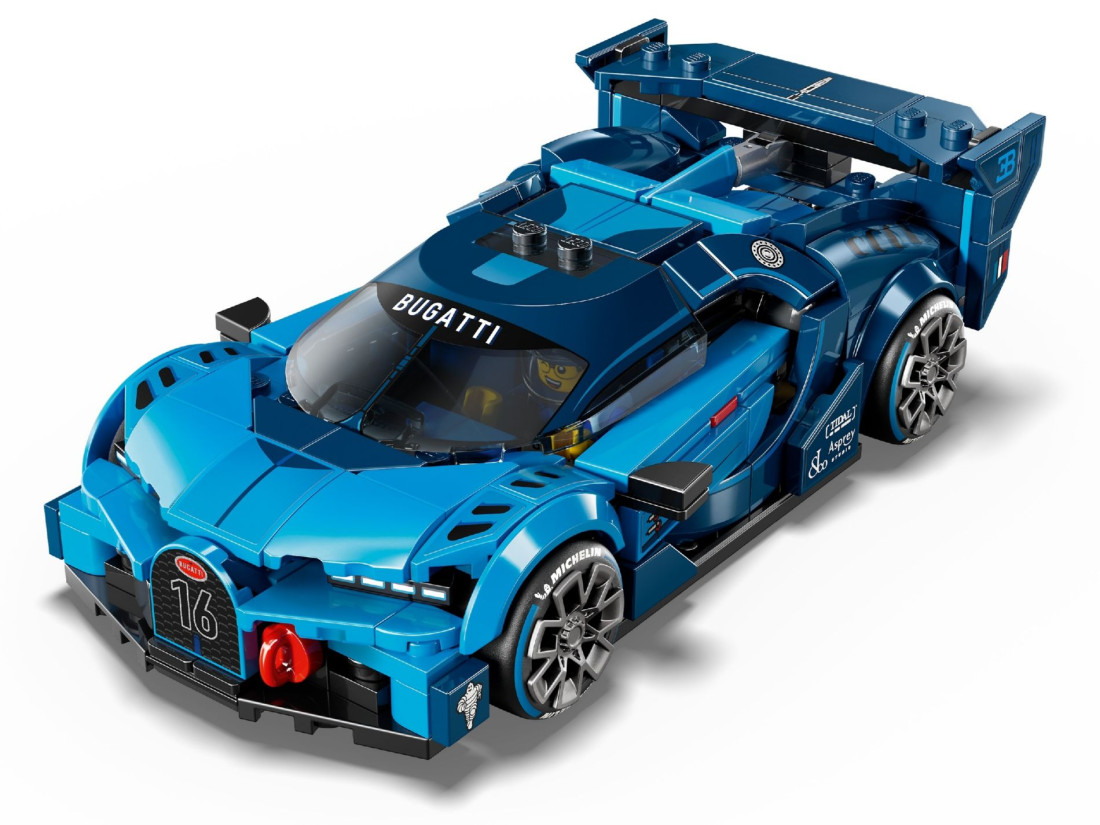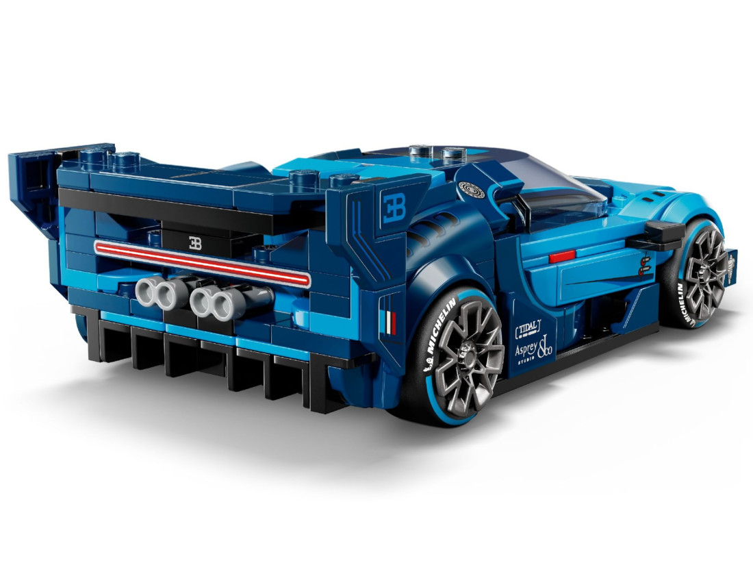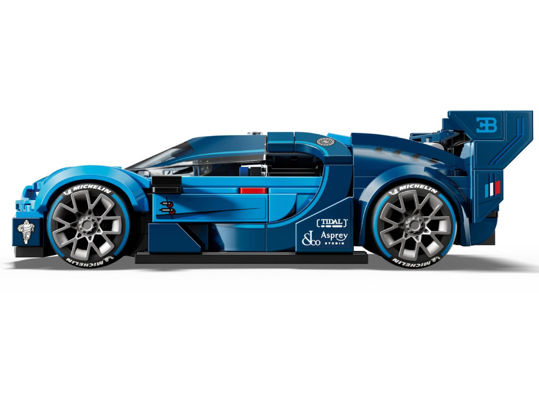 Збірка підкреслює підковоподібну радіаторну решітку, восьмилинзові фари, потужне заднє антикрило і широкі шини з маркуванням Michelin. У кабіну вміщується мініфігурка пілота Bugatti; низька посадка додає реалізму сценам заїзду. 284 деталі і додаток LEGO Builder із 3D-поворотом, масштабуванням і відстеженням кроків роблять процес зручним.