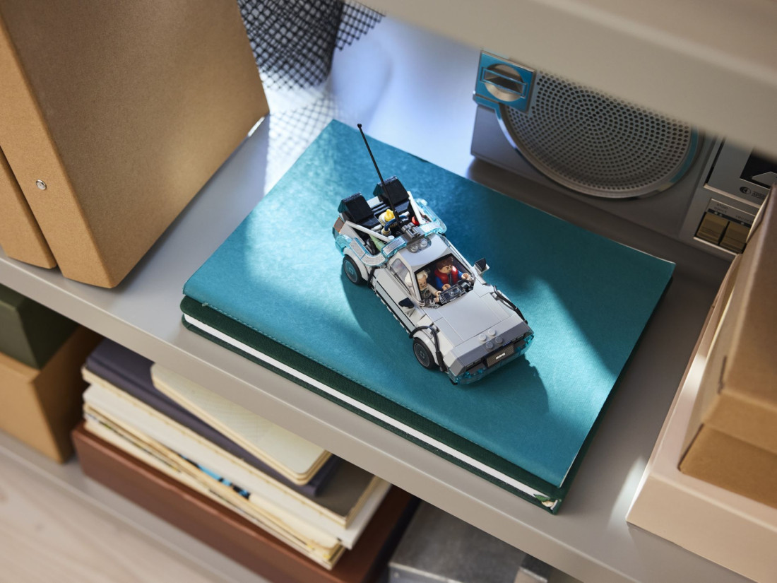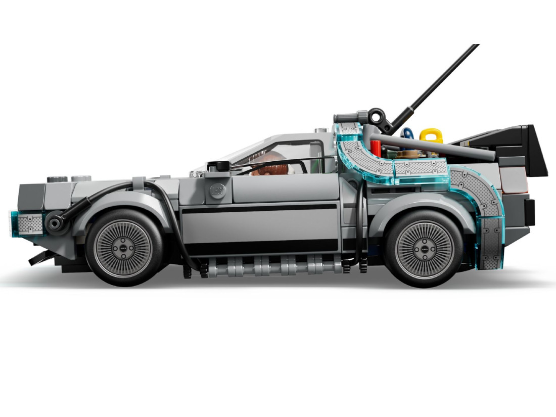 Конструктор пропонує варіативність: класичний дорожній варіант з першої частини з блискавкою і номером California можна перетворити на літаючу версію з продовження - з установкою Mr. Fusion, помаранчевим номером та колесами, що розвертаються в горизонталь. У комплект входять мініфігурки Дока Брауна та Марті МакФлая. Розміри готової моделі: близько 10×17×7 см; кількість елементів – 357. Покрокова інтерактивна інструкція доступна у додатку LEGO Builder, що спрощує складання та дозволяє розглянути модель у 3D.