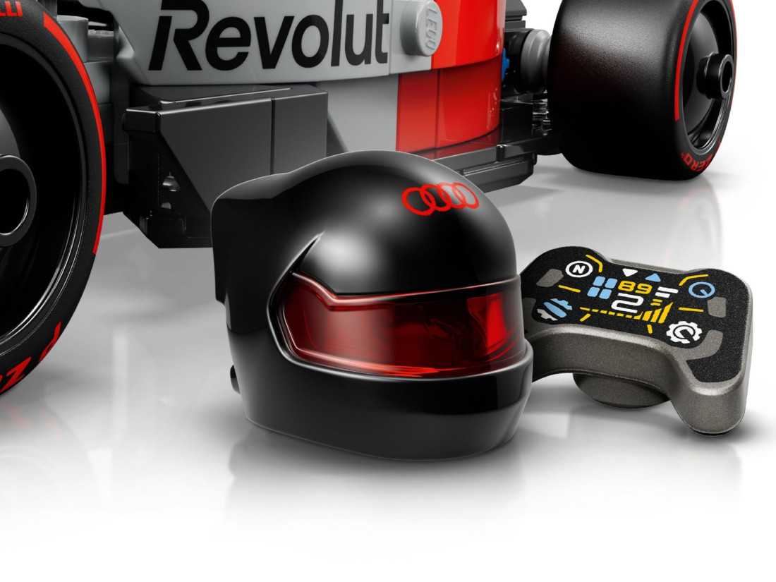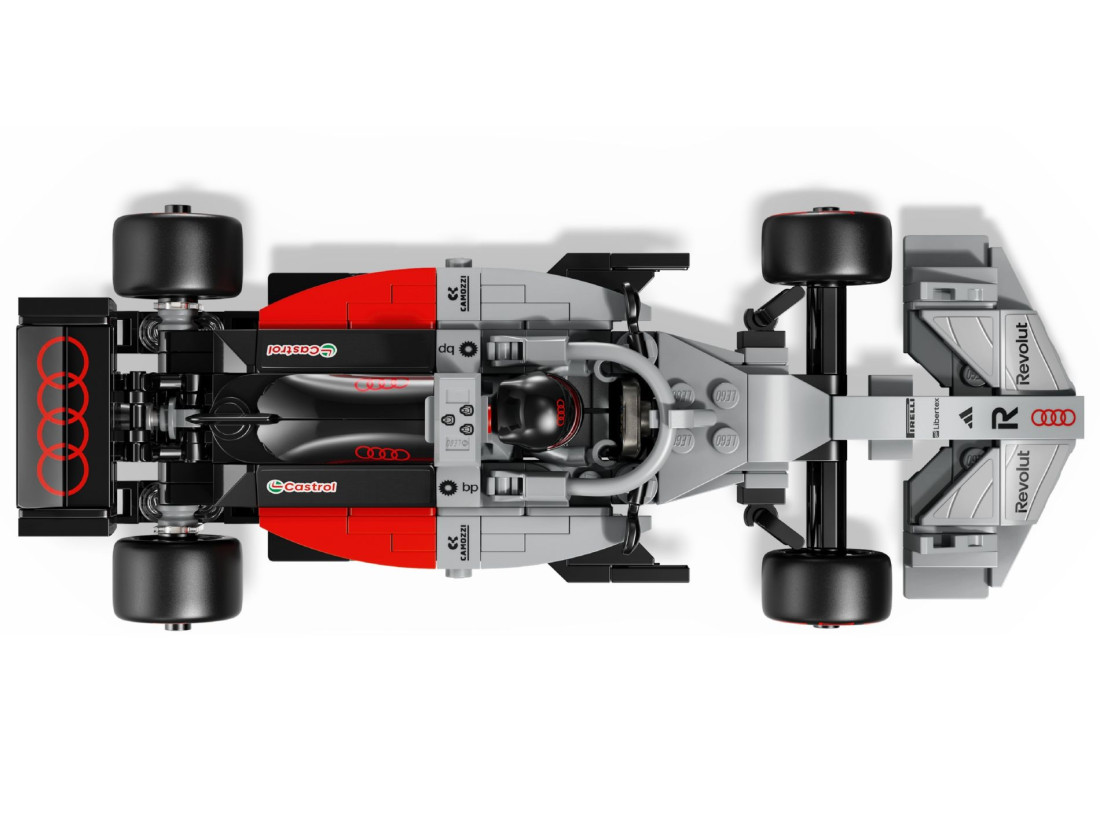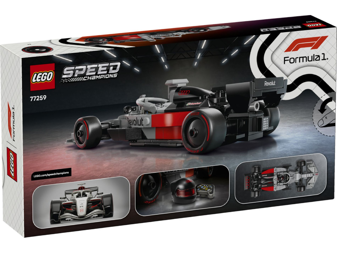 Набір LEGO SPEED CHAMPIONS Audi Revolut F1 Team R26 (77259) пропонує зібрати деталізований болід Формули‑1 у стилістиці регламентів сезону 2026. Модель передає обводи автомобіля команди: відкрита кабіна пілота, аеродинамічні площини, носова частина з опрацьованими елементами передньої секції та велике заднє антикрило. Колеса укомплектовані шинами з маркуванням Pirelli, а наліпки та емблеми партнерів формують фірмову ліврею. У комплект входить мініфігурка пілота зі шоломом.