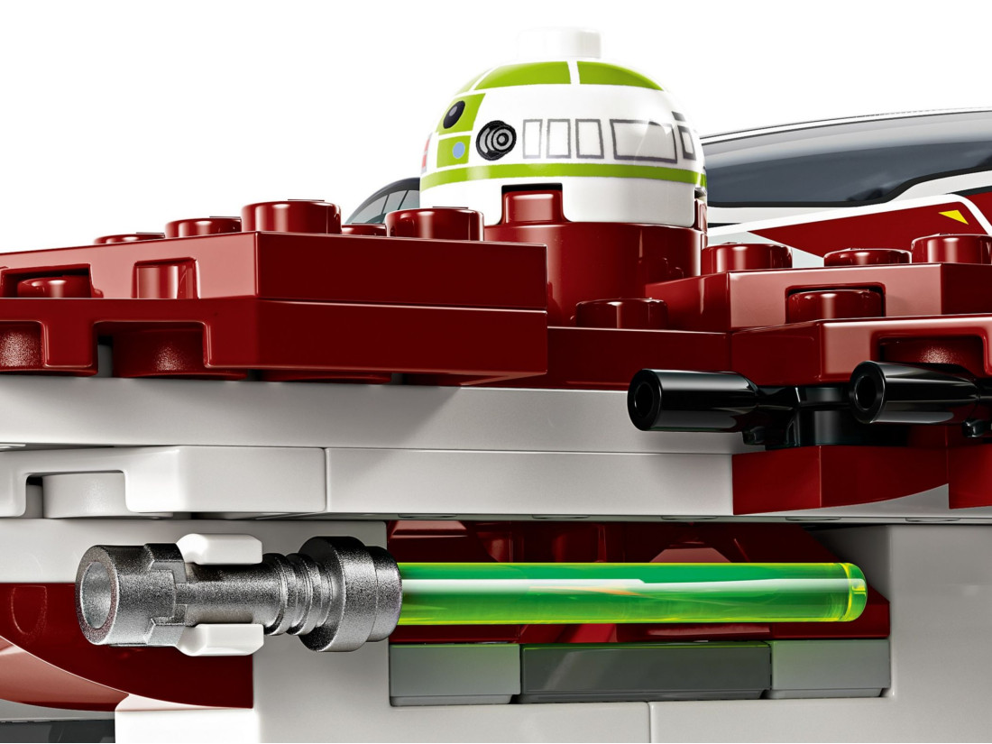 Набір включає: деталізований LEGO® цегельно-збірний джедайський винищувач Jedi Interceptor з кабіною, що регулюється, регульованими крилами для режимів атаки і крейсерського польоту, а також двома пружинними гарматами. - Асока Тано та Анакін Скайуокер зі світловими мечами™, а також дроїд R7-A7 для фантазійних ігор.