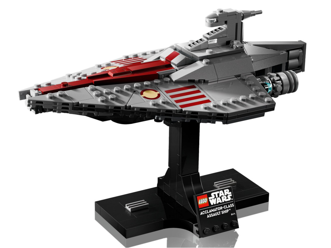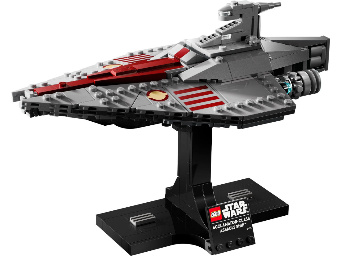 Набір включає: деталізовану модель Acclamator-Class Assault Ship з автентичними елементами, такими як характерний дизайн корабля, підвіска та озброєння. Після складання модель можна виставити на підставці з табличкою, що робить її чудовим елементом декору для будь-якої кімнати чи офісу.