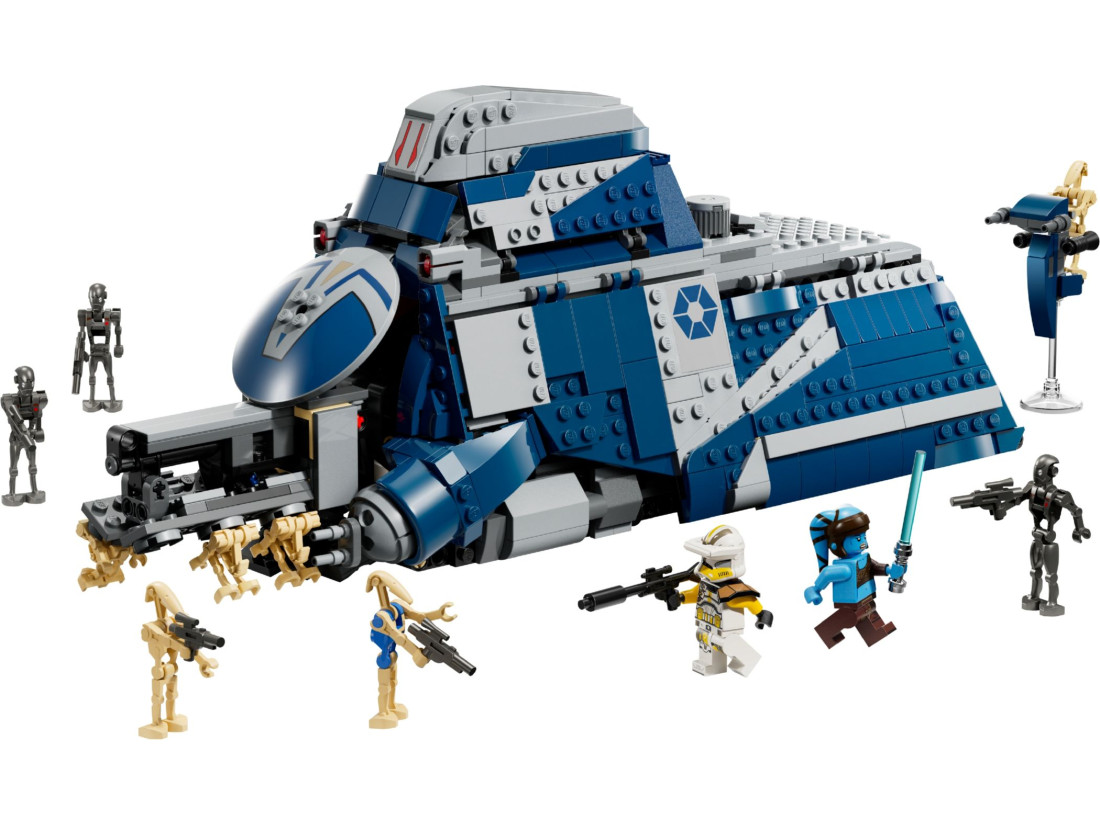 Набір LEGO Star Wars «Сепаратистський транспорт у битві на Фелуції» (75435) переносить тактику дроїдів на поле бою джунглевої планети. Масивний транспортер MTT створений для висадки підрозділів: корпус розкривається, щоб отримати доступ до кабіни та обладнання, а висувна стійка дає змогу оперативно вишикувати дроїдів у бойові ряди. Усередині сховано маневрений спідер STAP, який швидко розгортається для розвідки або підтримки.
