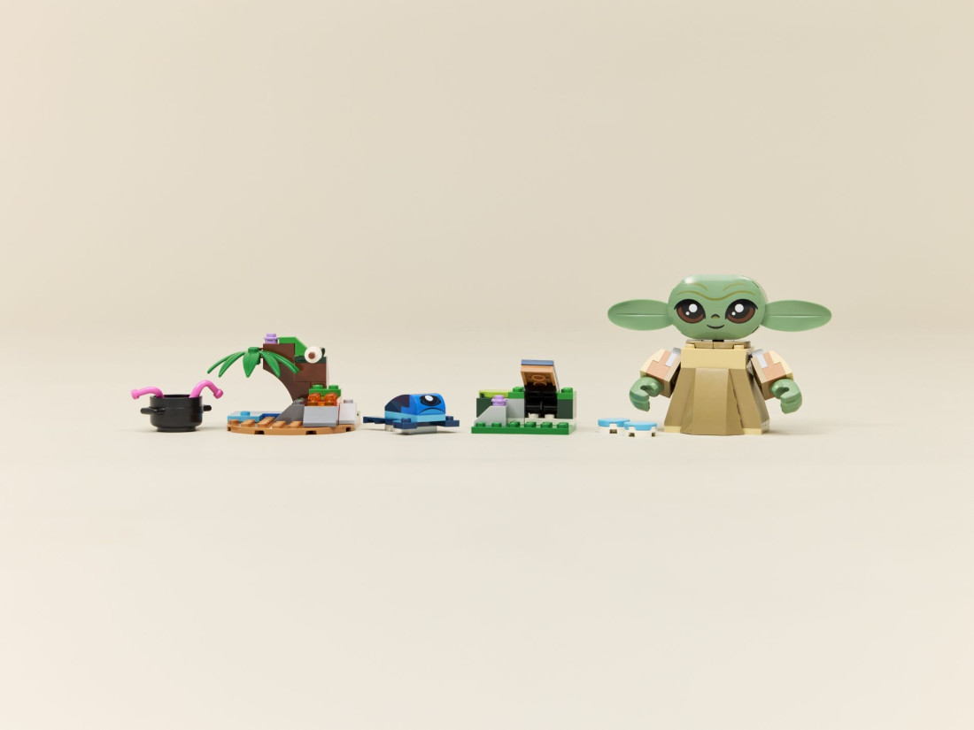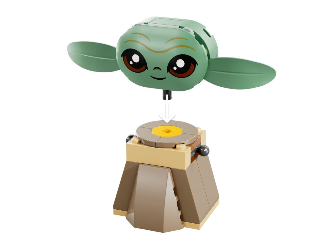 Набір розрахований на перший досвід конструювання: послідовні кроки допомагають швидко розпочати гру, розвиваючи дрібну моторику та уяву. Можна розігрувати моменти з першого сезону «Мандалорця» — від трапези біля вогнища до кумедних погонь за жабами. Усього 107 деталей; висота фігурки Ґрогу — близько 7 см.