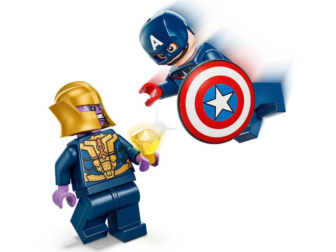 Час вирішальної сутички: набір LEGO Marvel «Капітан Америка проти Таноса» (76319) призначений для будівничих віком від 4 років. Юні фанати розігрують погоню за Каменем Нескінченності: Капітан вирушає на маневреному Квінджеті, а Танос пілотує мінікорабель, стилізований під Рукавицю Нескінченності. Аксесуари та прості ігрові функції допомагають одразу розпочати історію про порятунок Всесвіту.