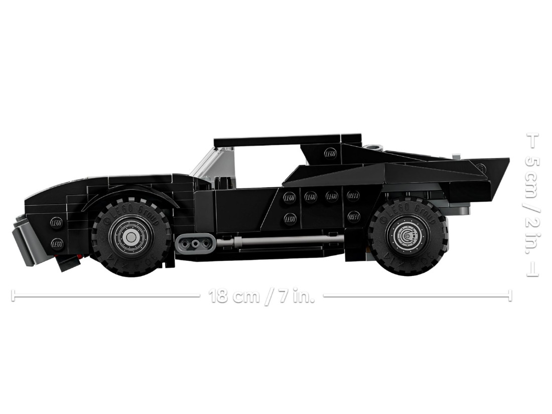 Конструкція передбачає доступ до кабіни через знімний дах; усередині розміщується мініфігурка Бетмена з тканинним плащем. Під відкидним капотом розташована пам’ятна золота монета, що підкреслює ювілейний статус випуску. З 330 деталей збирається машина завдовжки близько 18 см, завширшки 8 см і заввишки 5 см — формат зручний для динамічних ігрових сцен і для розміщення на полиці поруч з іншими моделями серії LEGO DC.