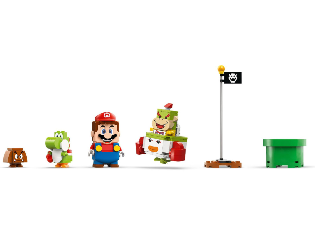 Ігровий набір для пригод – Почніть зі стартової труби, привітайте Йоші, переможіть Гумбу, тупайте по блоку "?", боріться з Боузером-молодшим і завершіть пригоду біля фінішного прапора.