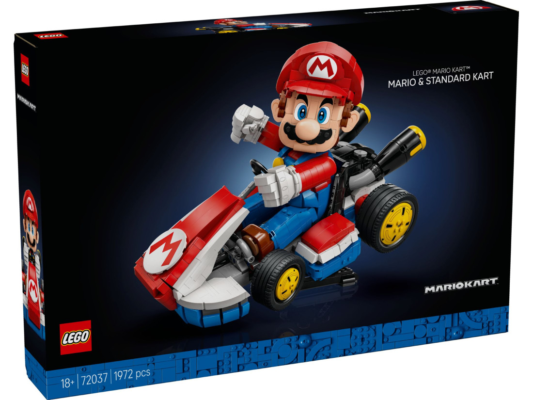 Пориньте у світ гонок Mario Kart з колекційною моделлю LEGO Super Mario «Маріо та стандартний карт» (72037) для дорослих фанатів Nintendo.