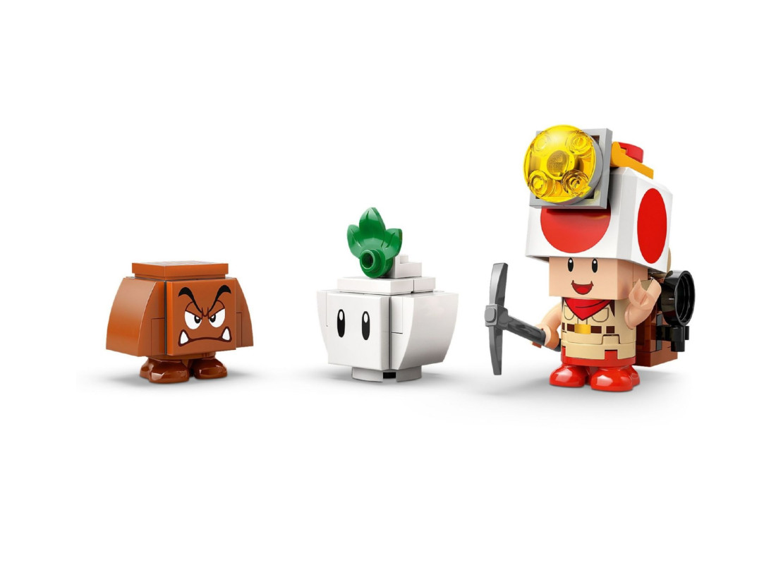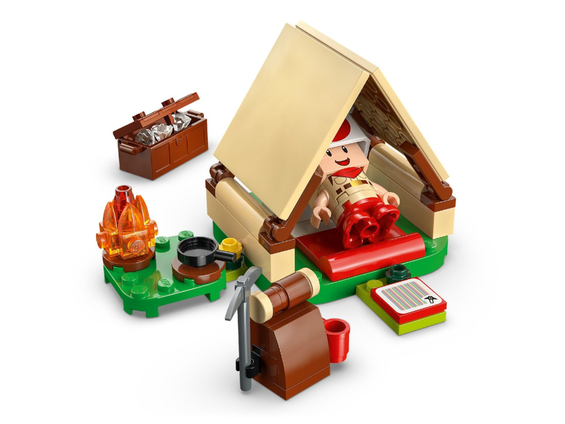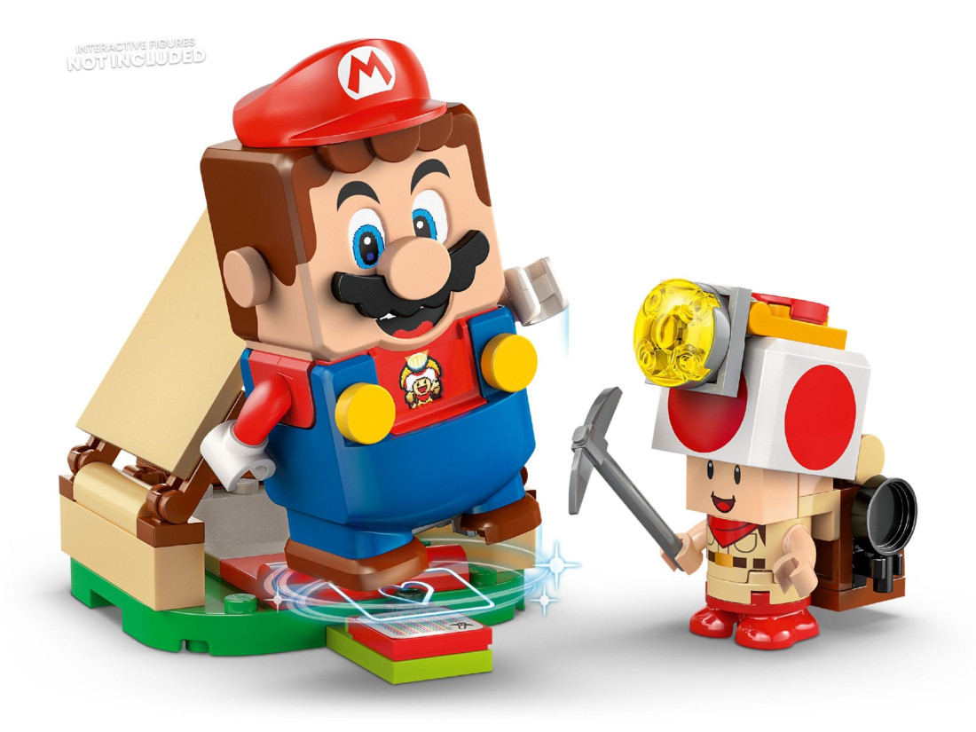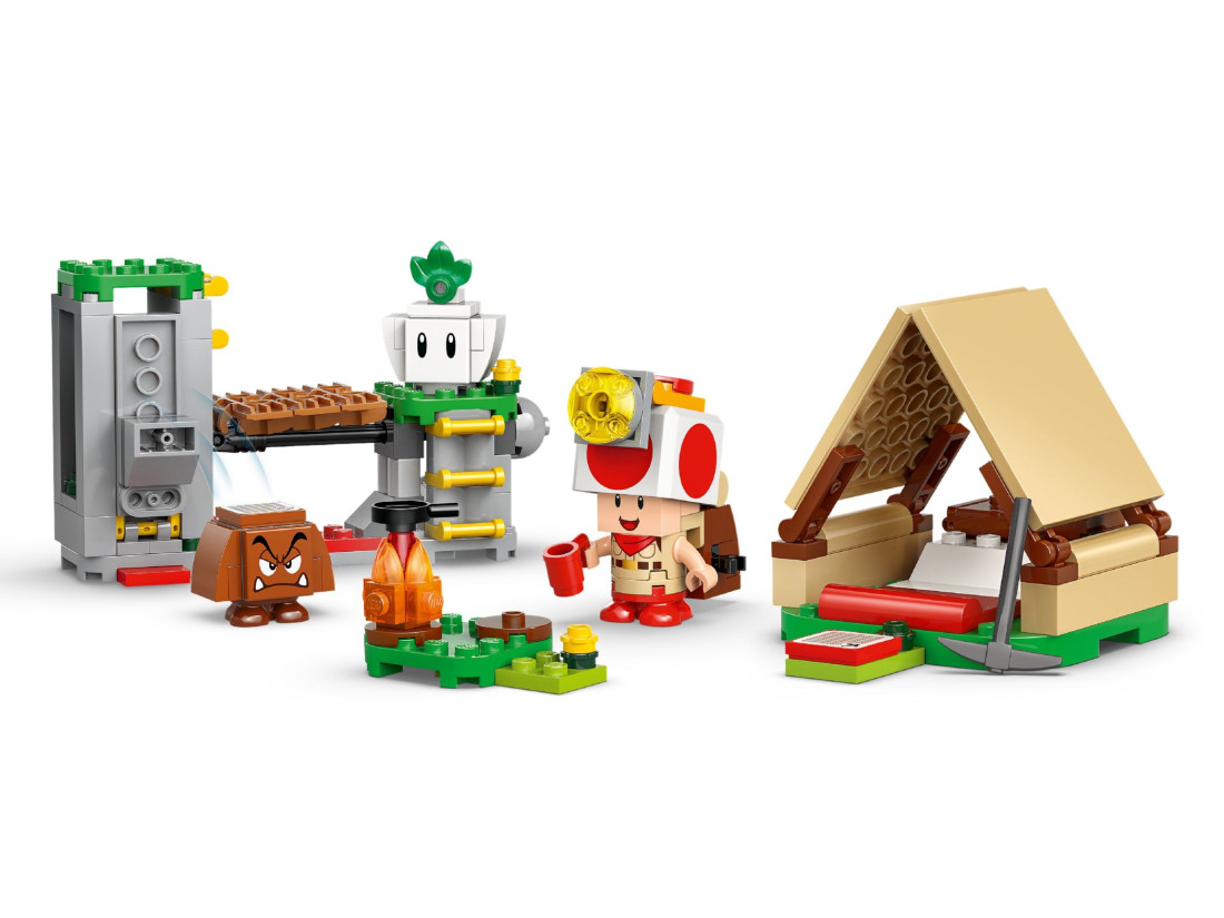 - Інтерактив: мітка дії біля намету; цифрові реакції з LEGO Mario, LEGO Luigi, LEGO Peach (продаються окремо).