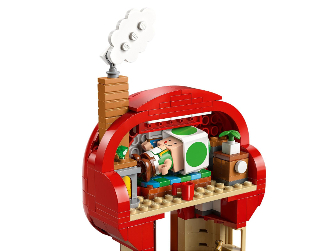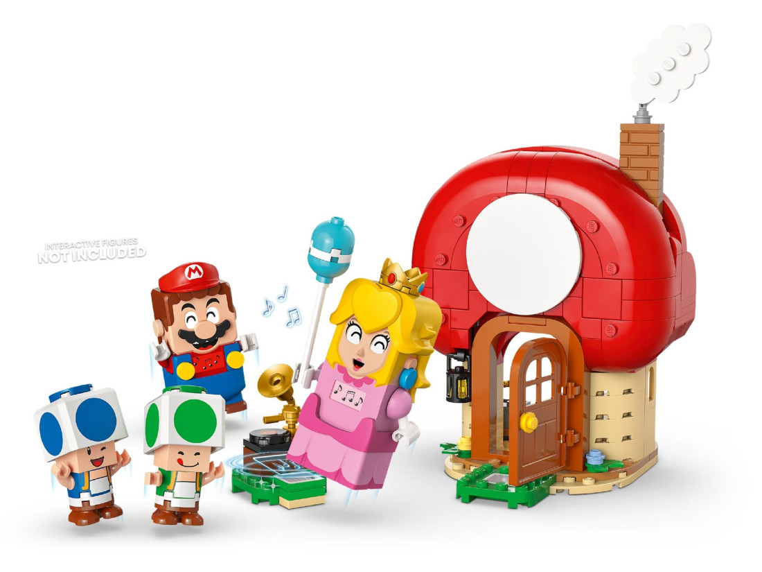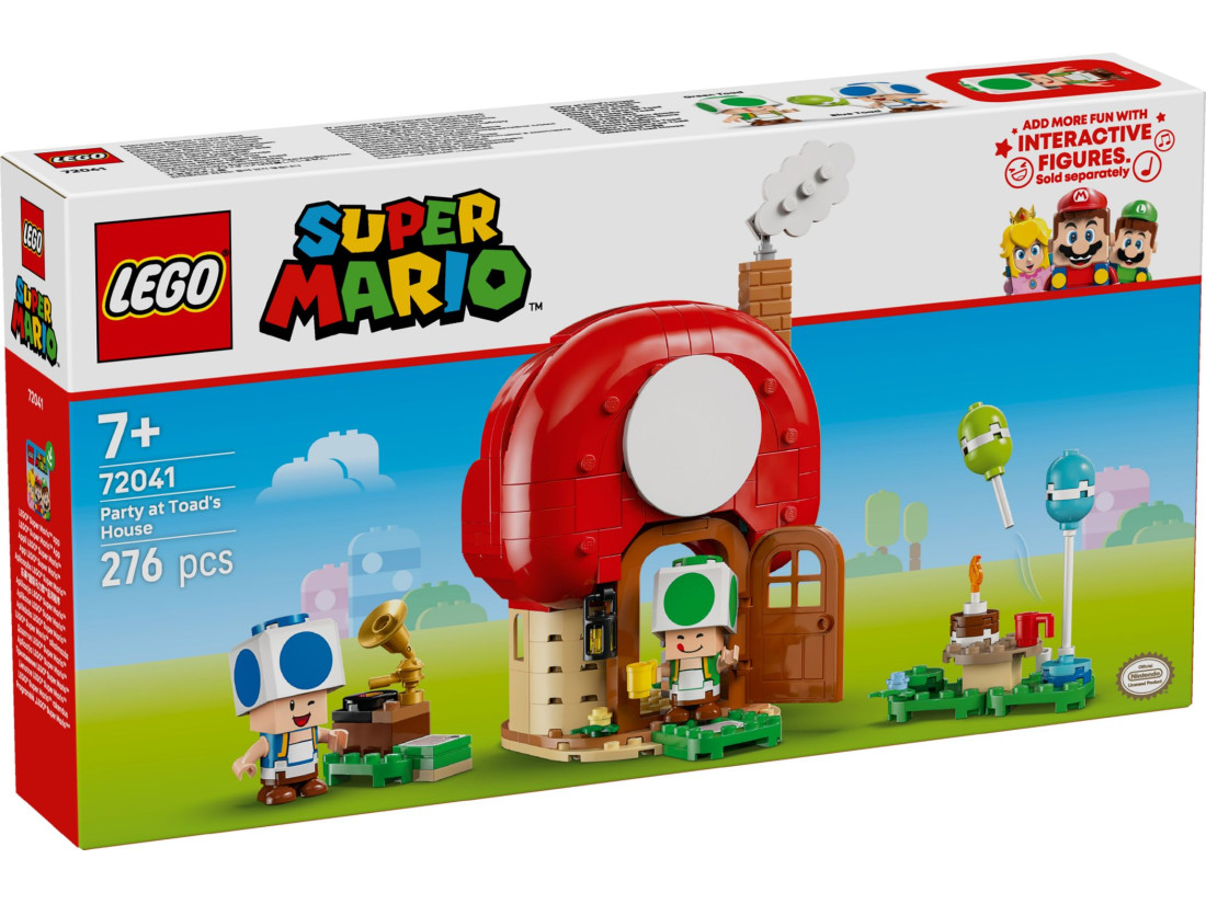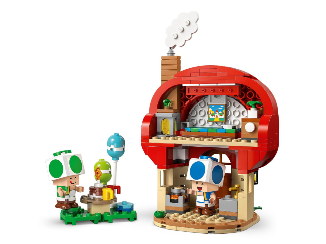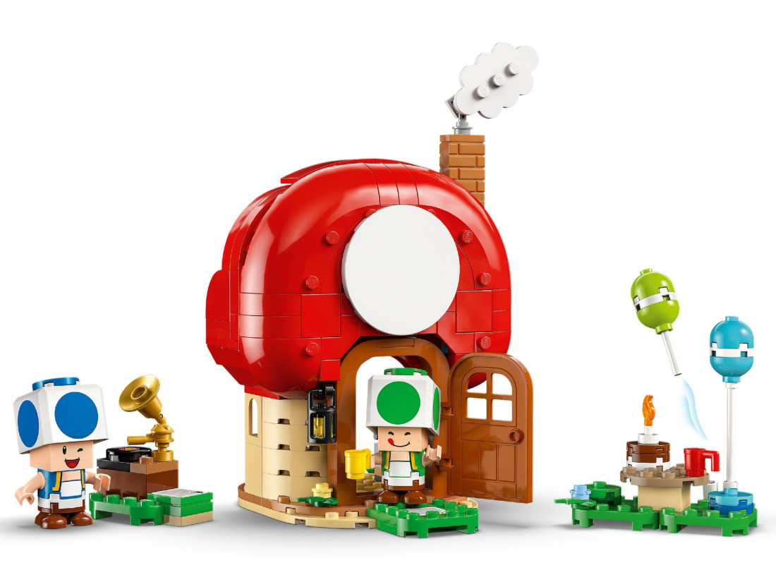 Запросіть дітей від 7 років на святкові пригоди з набором LEGO Super Mario «Вечірка у домі Тоада» (арт. 72041). Модель передає затишок помешкання Тоада: є кухня та спальня з картиною «Замок Піч», а меблі легко зняти й переставити. У дворі облаштована зона пікніка зі столом і місцями для Синього та Зеленого Тоада, а головним атрибутом веселощів слугує грамофон з обертовим програвачем і міткою дії для музики.