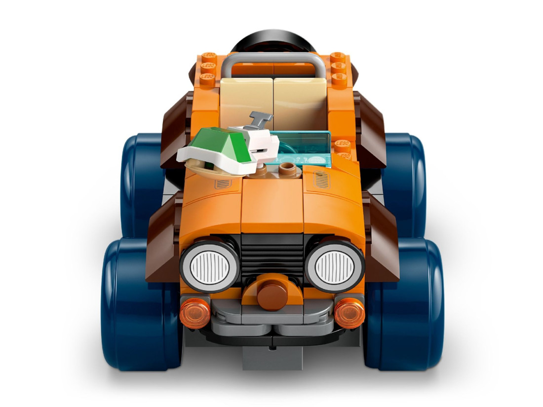 Три деталізовані фігурки та 588 елементів задають добрий темп складанню й грі, а продумана геометрія шасі допомагає розігрувати зіткнення та обгони. Для інтерактивного режиму можна додати LEGO Mario, LEGO Luigi або LEGO Peach (не входять до комплекту): датчики та екрани цих героїв активують звукові й візуальні ефекти та підрахунок монет. Розмір Tanooki Kart у зібраному вигляді: висота 6 см, довжина 12 см, ширина 9 см.