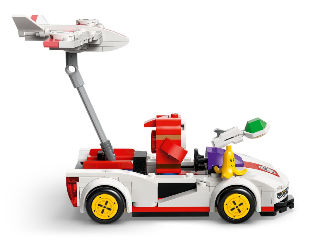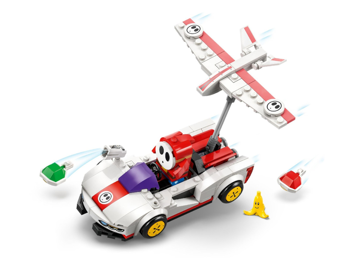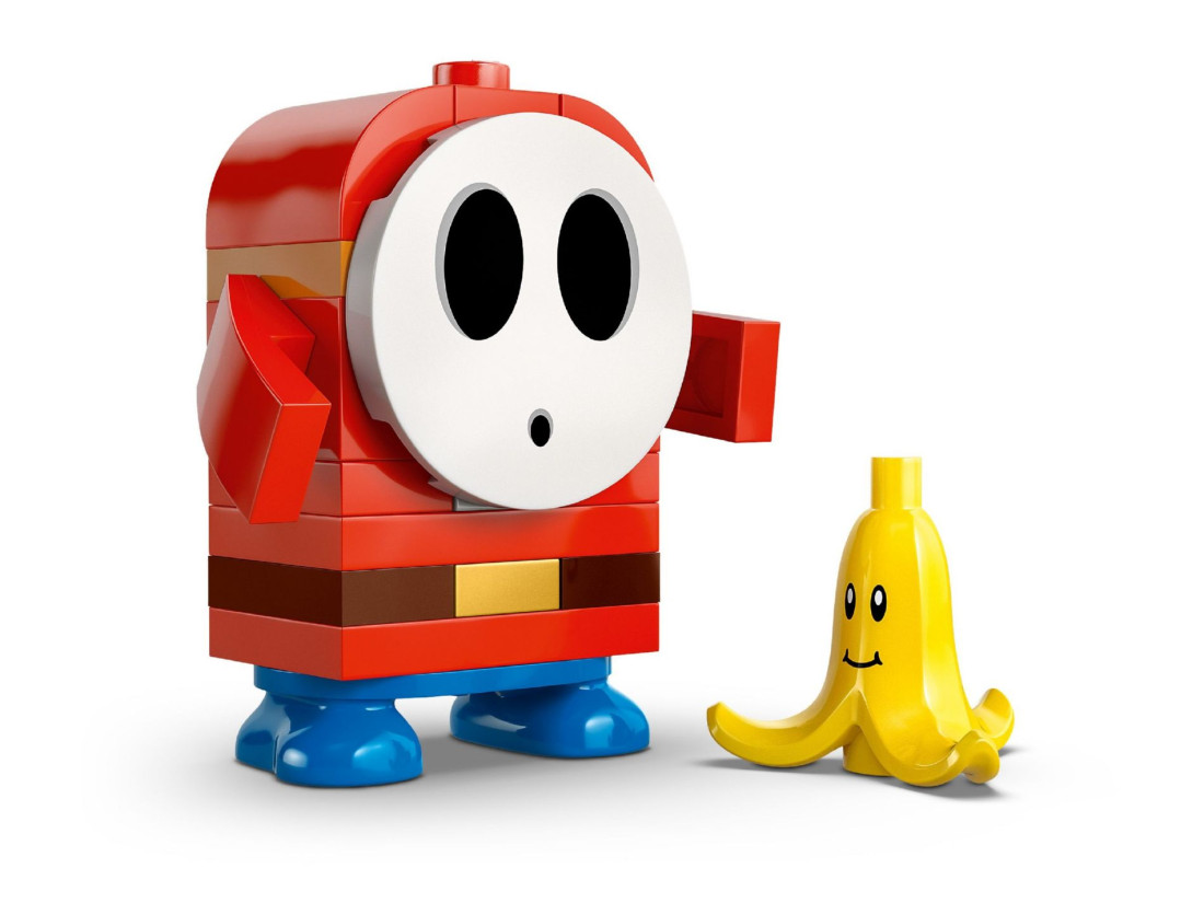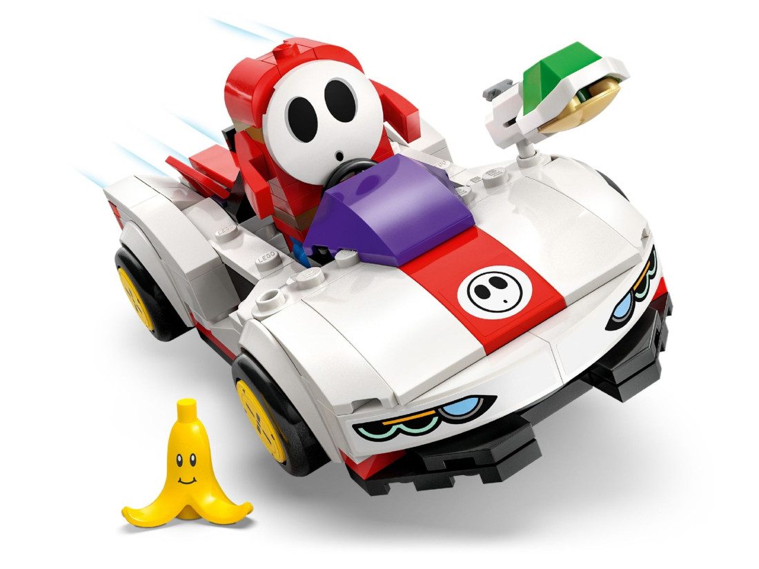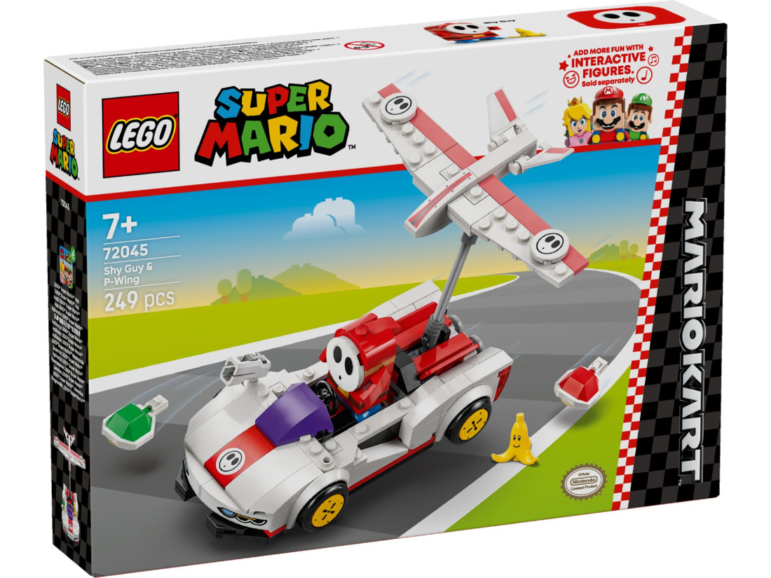 Набір LEGO SUPER MARIO Сором’язливець і P‑Wing (72045) переносить динаміку MARIO KART у формат конструювання. У центрі гри — фігурка Сором’язливця та керований ним P‑Wing: компактна модель з можливістю запускати снаряди й виконувати ефектні дрифт‑повороти. Елемент «банан» додає тактичних прийомів — можна влаштовувати пастки та змінювати перебіг заїзду просто під час партії.