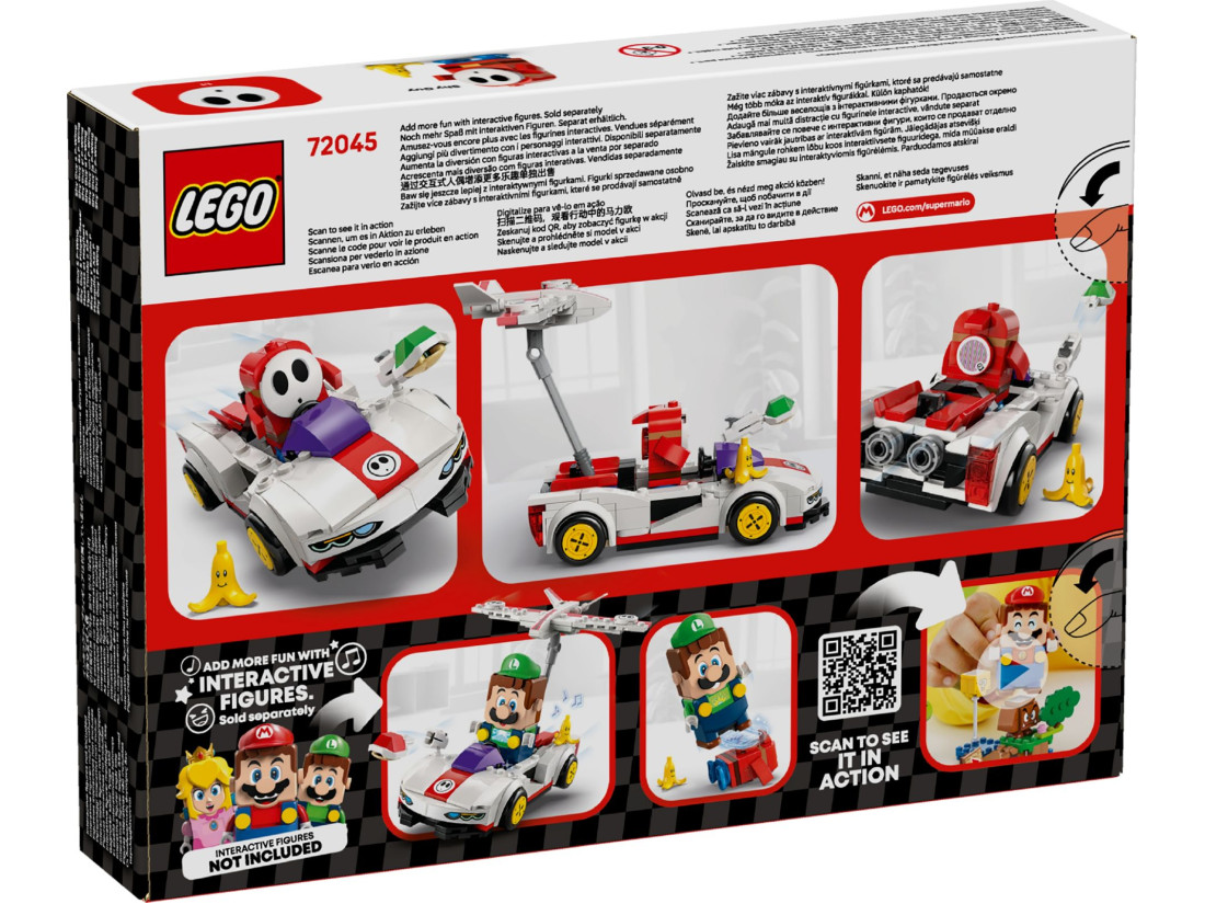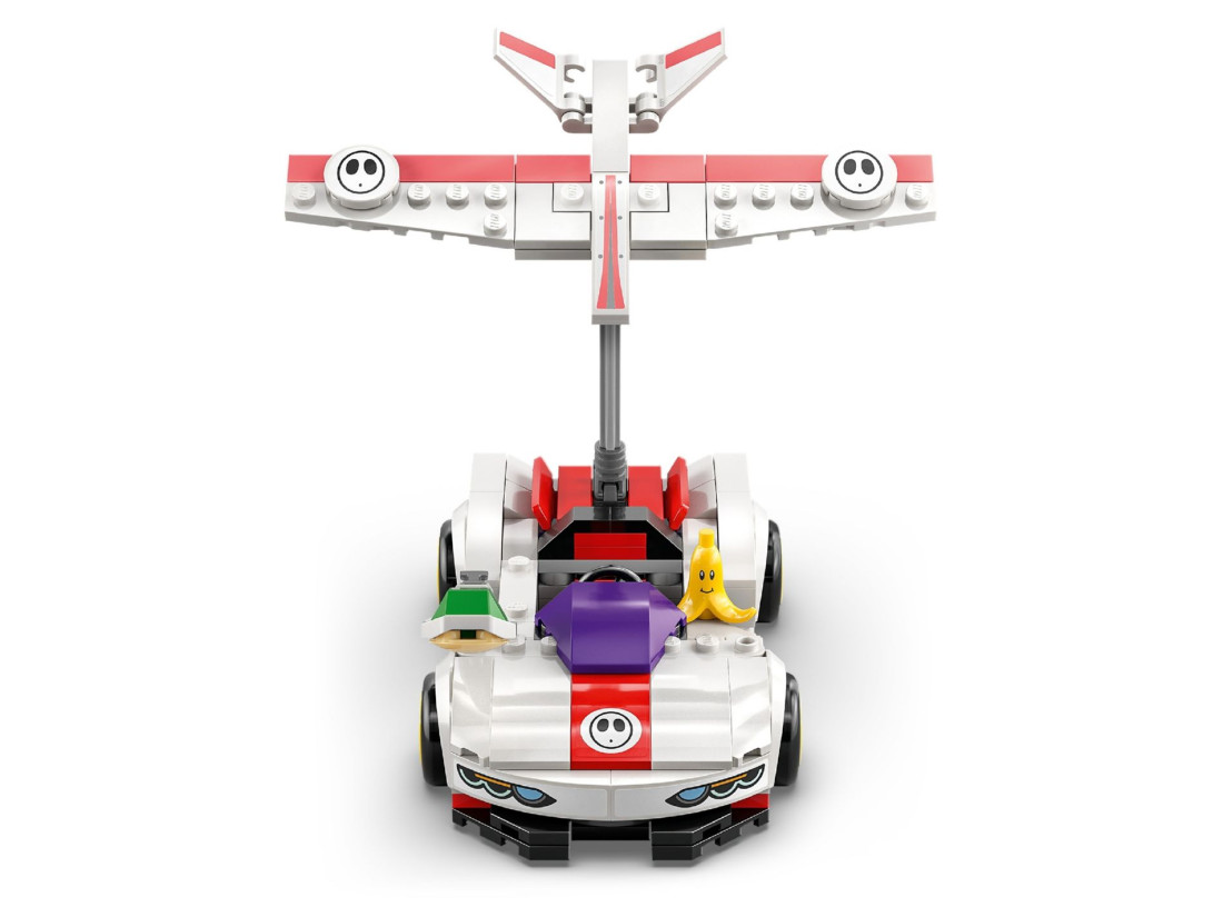 Конструкція з 249 елементів швидко збирається й заохочує вільні сценарії перегонів і сутичок. У P‑Wing передбачені знімний планер і висувне сидіння, куди поміщається інтерактивна фігурка Mario, Luigi або Peach для ігрових реакцій. Габарити моделі — близько 4 см заввишки, 14 см завдовжки і 7 см завширшки — зручні для заїздів на столі та інтеграції у рівні LEGO SUPER MARIO.