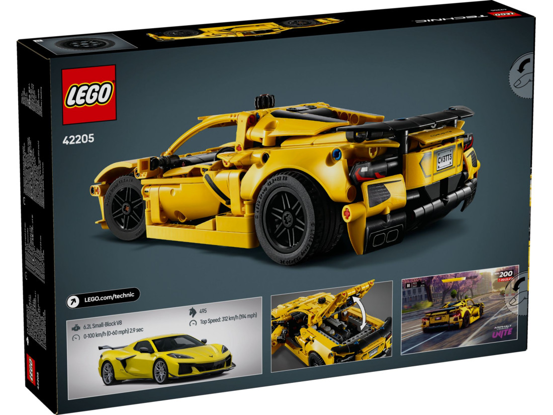 Розігрійте свою уяву з набором LEGO City Technic Chevrolet Corvette Stingray (42205). Цей деталізований набір для складання призначений для дітей віком від 9 років і більше і дозволяє відтворити атмосферу справжніх перегонів спортивних автомобілів. Зберіть реалістичні функції, такі як 8-циліндровий двигун, що рухається, диференціал і систему управління з функціональною ручкою, а також відкрийте двері і капот, щоб помилуватися інтер'єром. Яскрава колірна схема та автентичний дизайн роблять цей Corvette ідеальним елементом для демонстрації та гри.