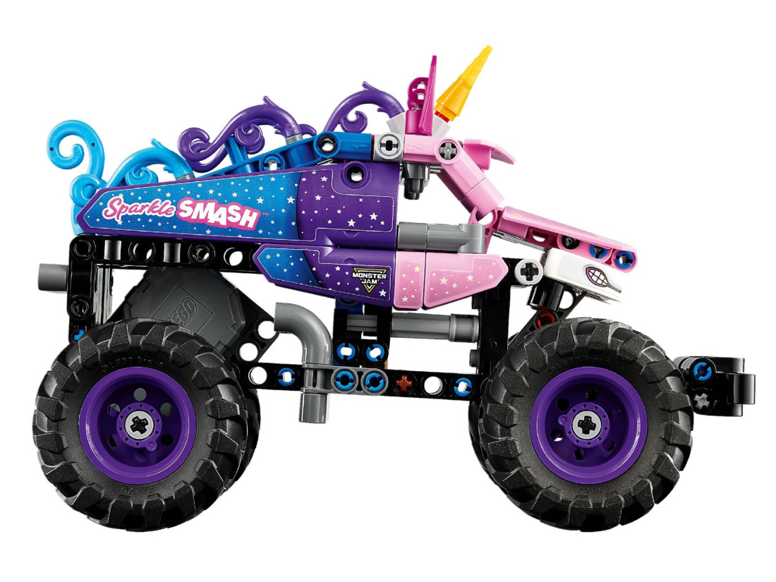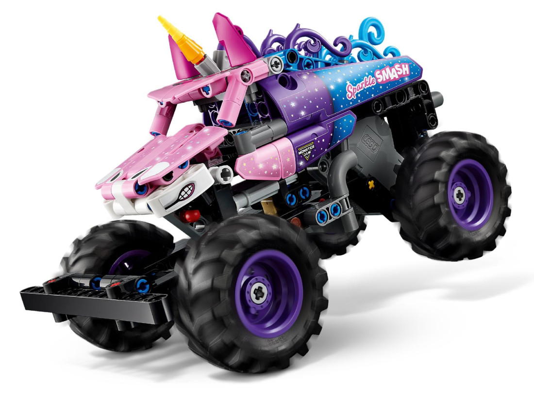 LEGO Technic Monster Jam Sparkle Smash (42220) — монстр-трак для дітей від 7 років, що поєднує динаміку арени Monster Jam і фантазію образу єдинорога. Модель відтворює впізнаваний зовнішній вигляд із фірмовим рогом, блискучими зірками та контрастним забарвленням, а інерційний механізм pull-back дозволяє запускати монстр-трак у стрімкий заїзд: потягніть машину назад, відпустіть — і вона мчить уперед, готова до стрибків та ефектних зіткнень. Конструкція з елементів LEGO Technic забезпечує реалістичне відчуття техніки та заохочує інтерес до механізмів.