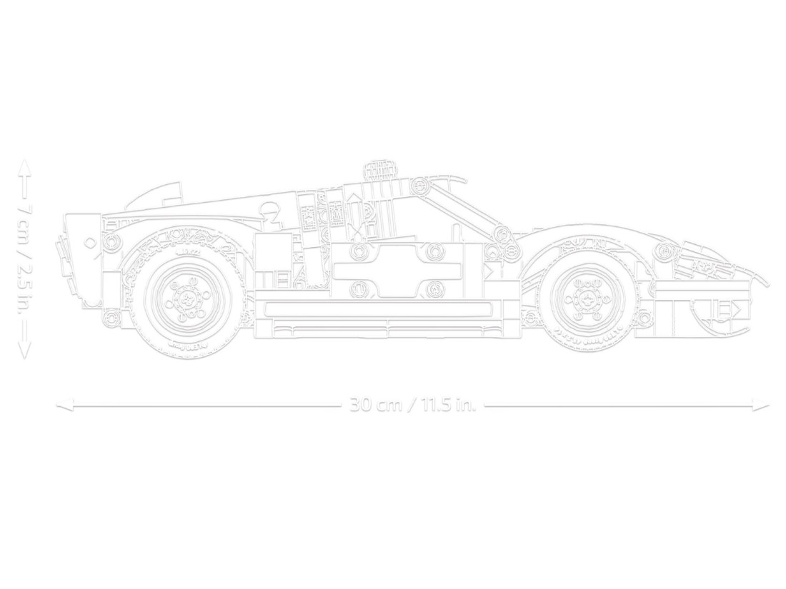 Модель розрахована на демонстрацію й гармонійно виглядає на полиці або робочому столі. У застосунку LEGO Builder доступні інтерактивні 3D‑інструкції з масштабуванням, обертанням і відстеженням прогресу. У наборі 793 елементи; розміри зібраного авто — близько 7×29×12 см.