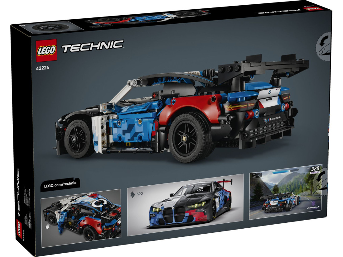 Конструктор LEGO Technic BMW M4 GT3 EVO (42226) — деталізована модель гоночного автомобіля для дітей від 11 років і шанувальників інженерії. Репліка передає характерні пропорції та елементи аеродинаміки прототипу BMW, а функціональні вузли містять діючу систему кермування, рядний шестициліндровий двигун із рухомими поршнями та двері, що відчиняються. Автентична гоночна ліврея підкреслює спортивний характер і допомагає розглянути дизайн автомобіля в деталях.
