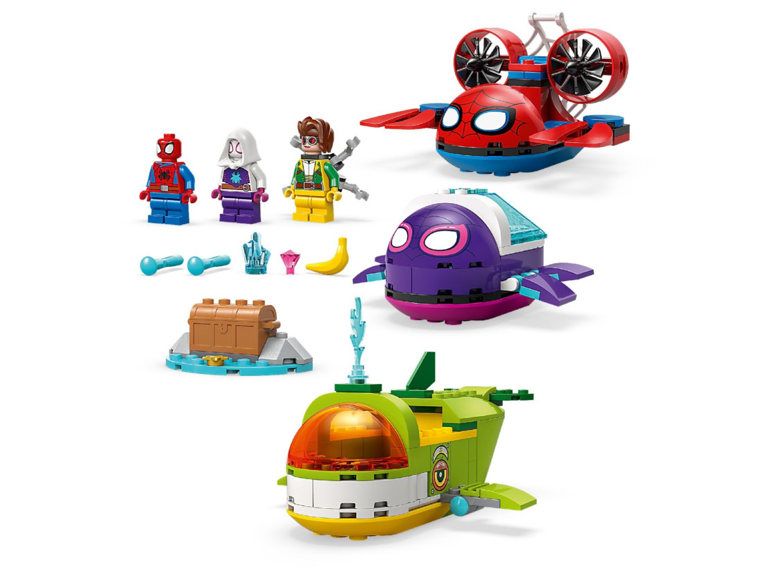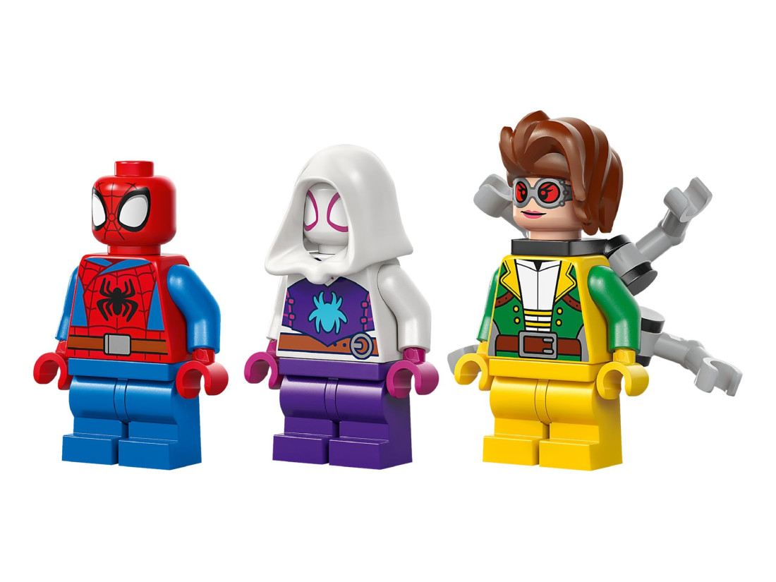 - Минифигурки: Спайди, Ghost-Spider и Доктор Осьминог.