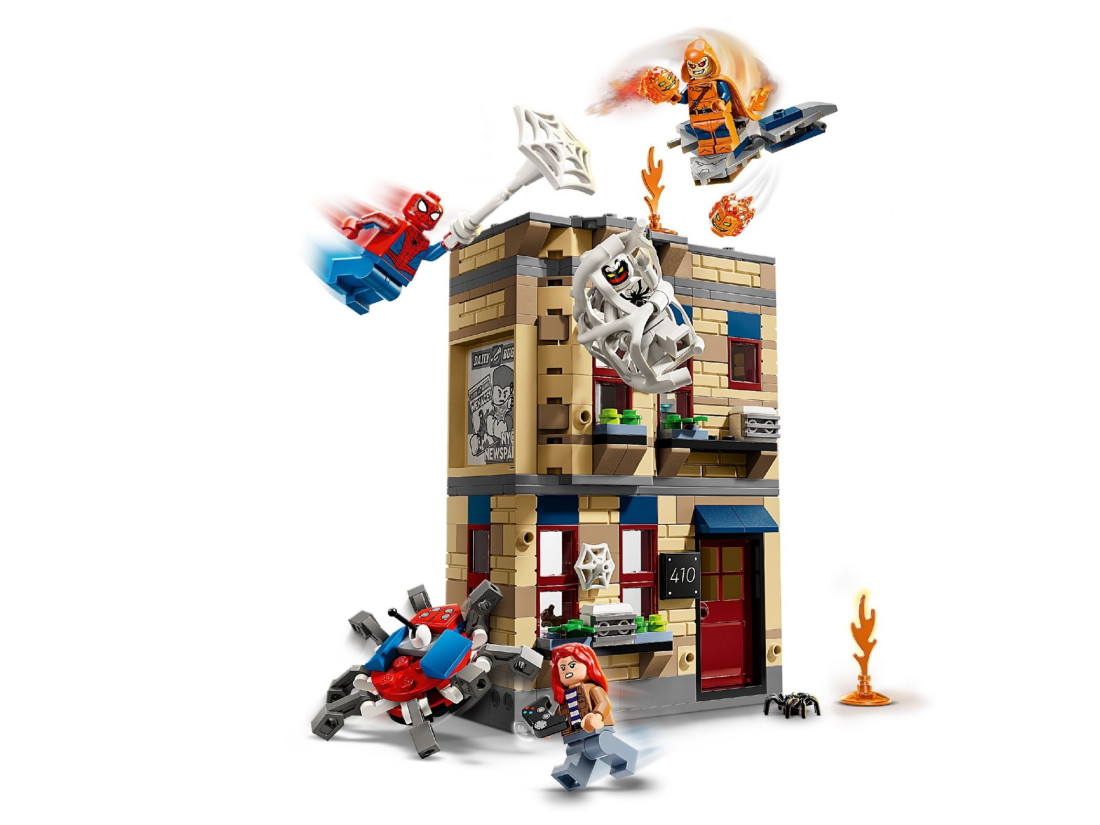 Здесь сходятся герои и злодеи: Человек-паук противостоит Хобгоблину и Анти-Веному, а Мэри Джейн и небольшой робот-паук вносят разнообразие. Для динамики есть механизм обрушения части фасада. Модель для детей от 8 лет; размеры собранной конструкции — приблизительно 16×12×8 см. Набор сочетается с 76324 и 76311 для объединения сцен.