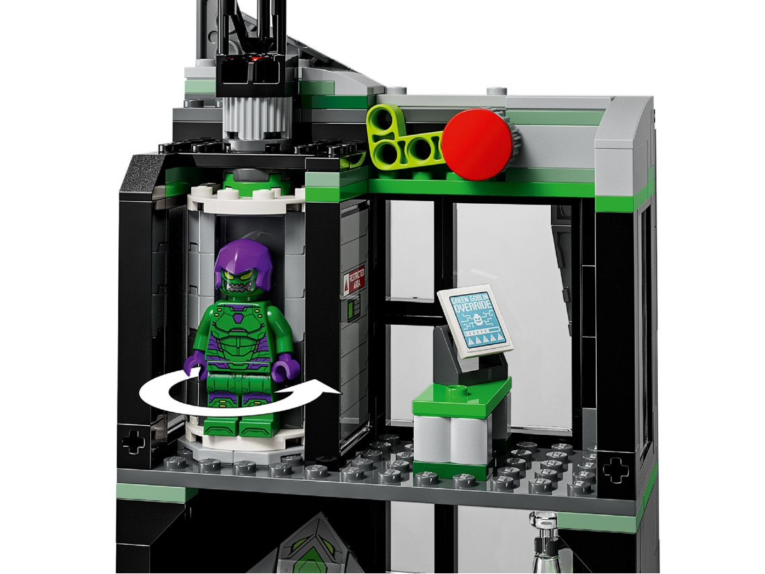 - 8 минифигурок, включая Зелёного Гоблина с глайдером и Майлза Моралеса с мотоциклом.